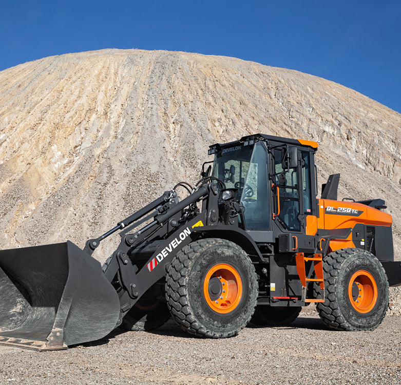 The DEVELON DL250TC-7 Wheel Loader is a high-performance machine, built for precision material handling, lift-and-place applications, and heavy-duty loading in construction and agriculture. With its parallel-lift linkage system, this loader keeps attachments level throughout lifting operations, ensuring accurate placement and efficient workflow.
