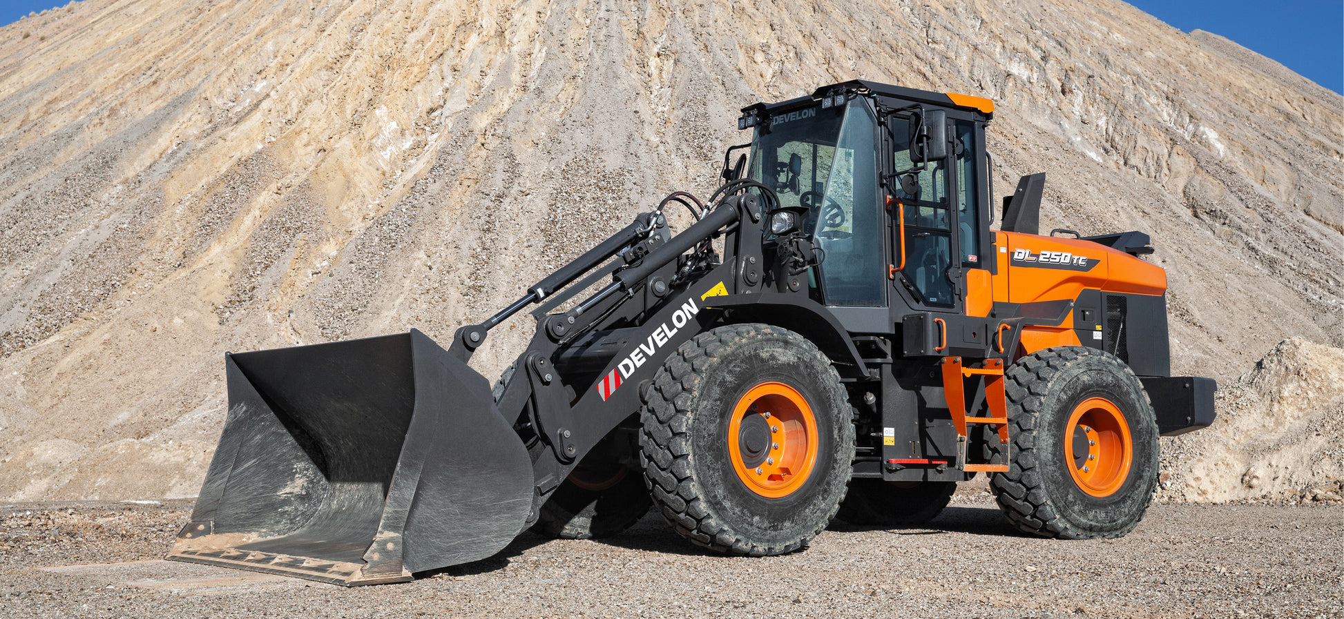 Develon | Wheel Loader | Model DL250TC-7 | Width 8' 11.8" | Horsepower 171.6 HP | For Construction, Agriculture, & Material Handling