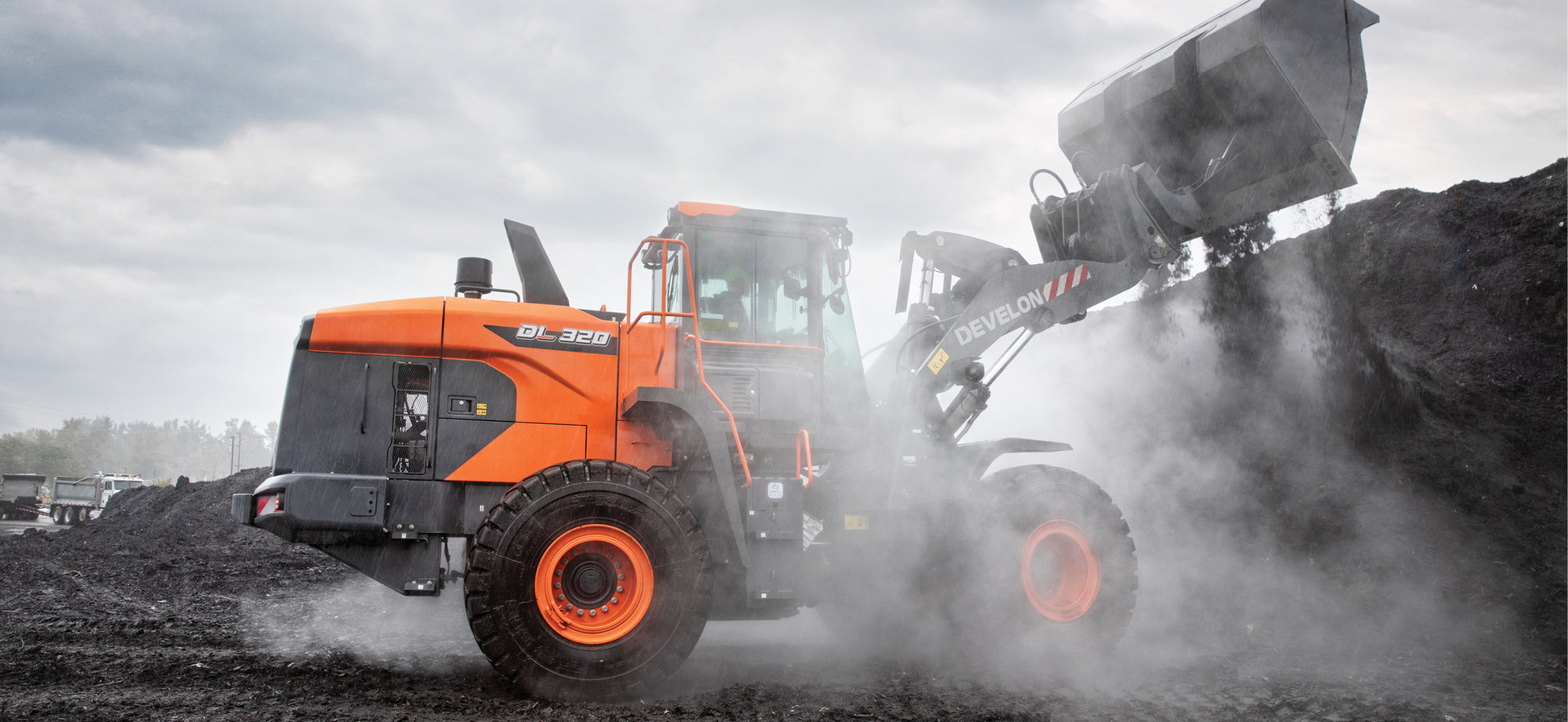 Whether you’re managing aggregate yards, loading high-sided trucks, or navigating job sites in demanding environments, the DL320-7 brings outstanding visibility, high breakout force, superior lift capacity, and a refined cab experience that puts full control in your hands.
