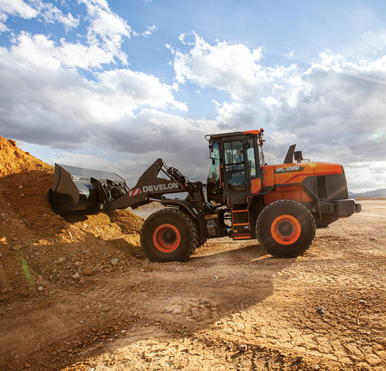 This next-generation wheel loader features a 7% larger bucket capacity, limited-slip differentials, and a high-torque DEVELON DL08 engine that cranks out 270.9 horsepower. Its reinforced box frame and intelligent features like the Transparent Bucket system and Smart Load Weighing system ensure maximum efficiency with minimum downtime.
