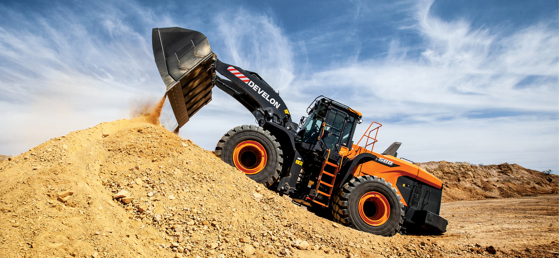Develon | Wheel Loader | Model DL580-7 | Width 11' 2.8" | Horsepower 394.3 HP | For Mining, Heavy Construction & Aggregate Handling