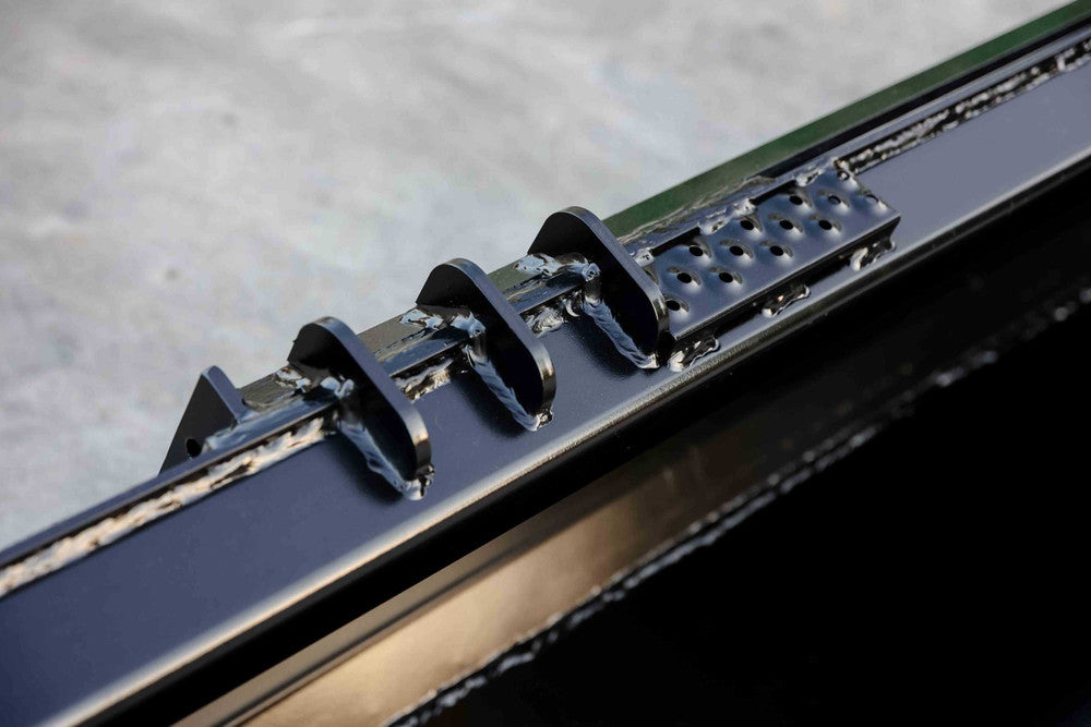 - Reinforced Design: 1/4" thick sides, bottom, back, and quick attach reinforcement plate for superior wear resistance.