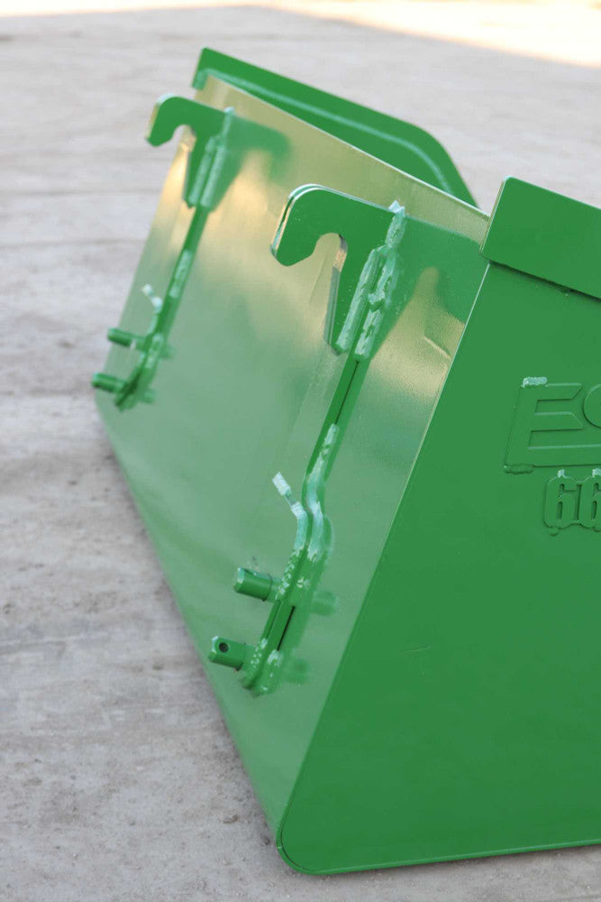 Crafted in the USA with high-grade American steel and finished in signature John Deere green, this bucket is designed specifically for John Deere compact tractors equipped with the pin-on quick attach system. It’s not just a tool it’s a productivity booster.
