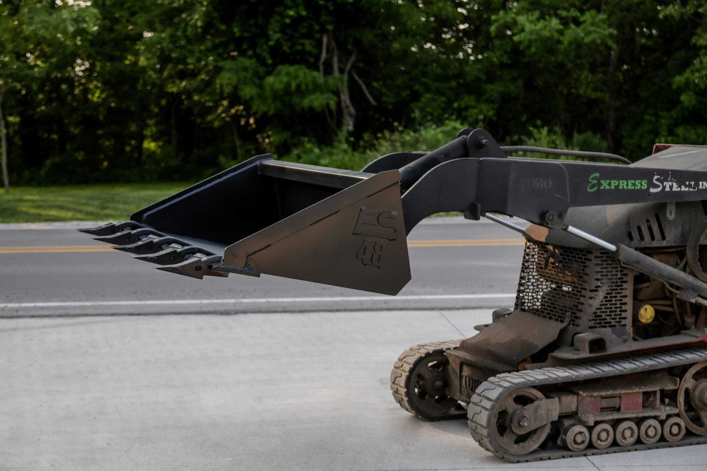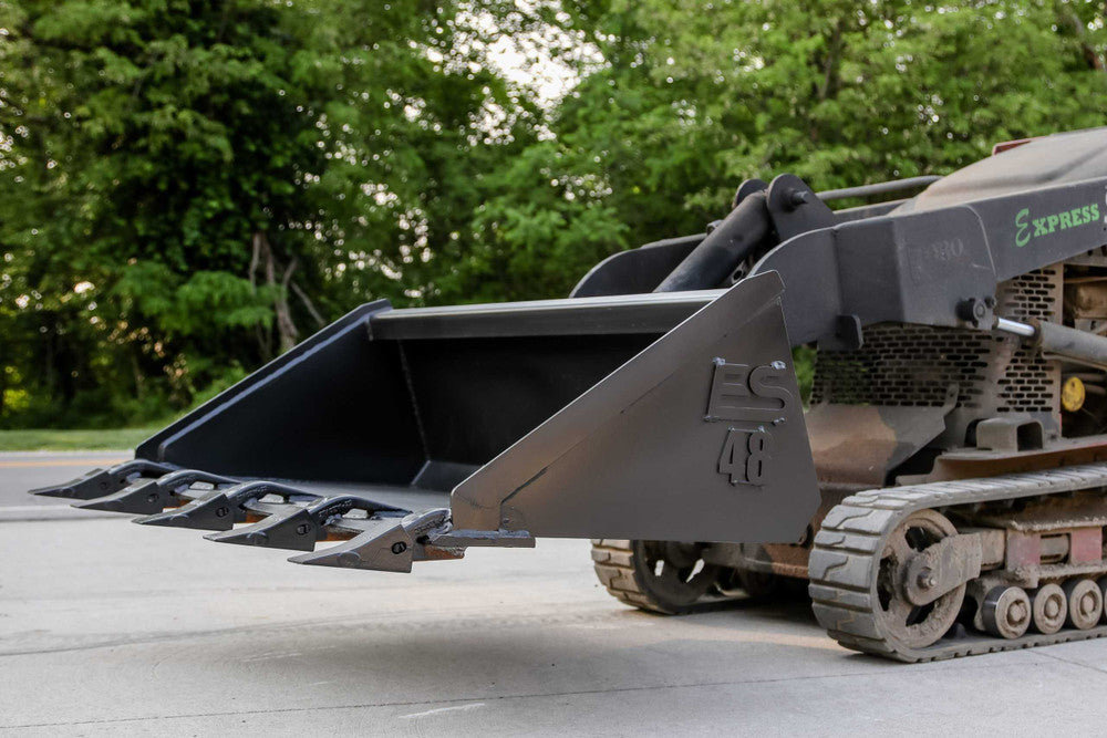 Express Steel | Tooth Bucket | Model 48" Toro Dingo | SKU ES-TDTB-0048 | Width 48" | Hydraulic Flow 0 To 25 GPM | For Mini Skid Steers & Compact Loaders