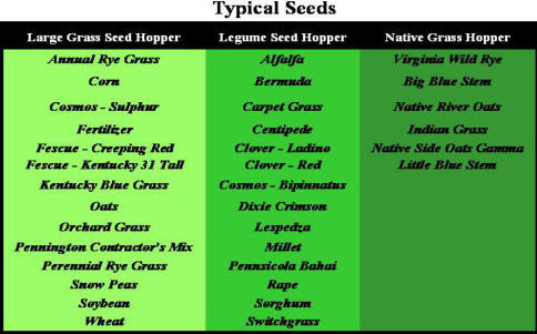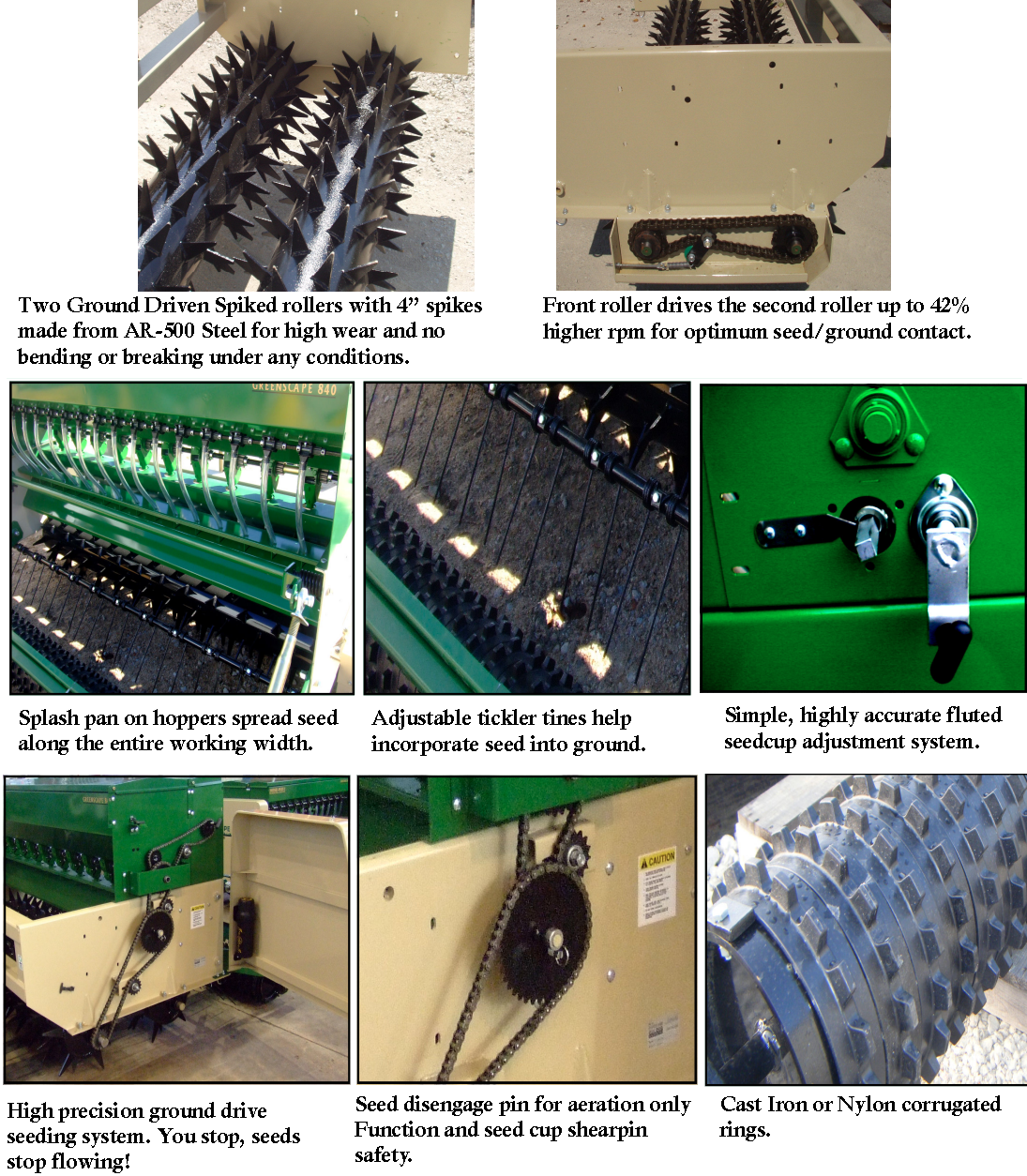The Greenscape Conservation Seeder represents a totally new concept in seeding. Being neither a grain drill nor a PTO driven seeder, the Greenscape effectively prepares the soil, drops and lightly covers the seed, and firmly presses the soil for a perfectly prepared seedbed. It is designed to achieve a perfect pattern across the working width of the machine; no row effect as with drills or knife type overseeders. This machine will seed into all conditions, including primary seeding into prepared ground or overseeding into existing vegetation. Best of all, it’s all ground driven – no PTO shafts or gearboxes to maintain, and requires only a 30-50 horsepower tractor to operate. When equipped with the optional precision small seed boxes, the Greenscape will plant virtually any type or size seed at any rate that you desire. Available in 60″ & 84 “.
