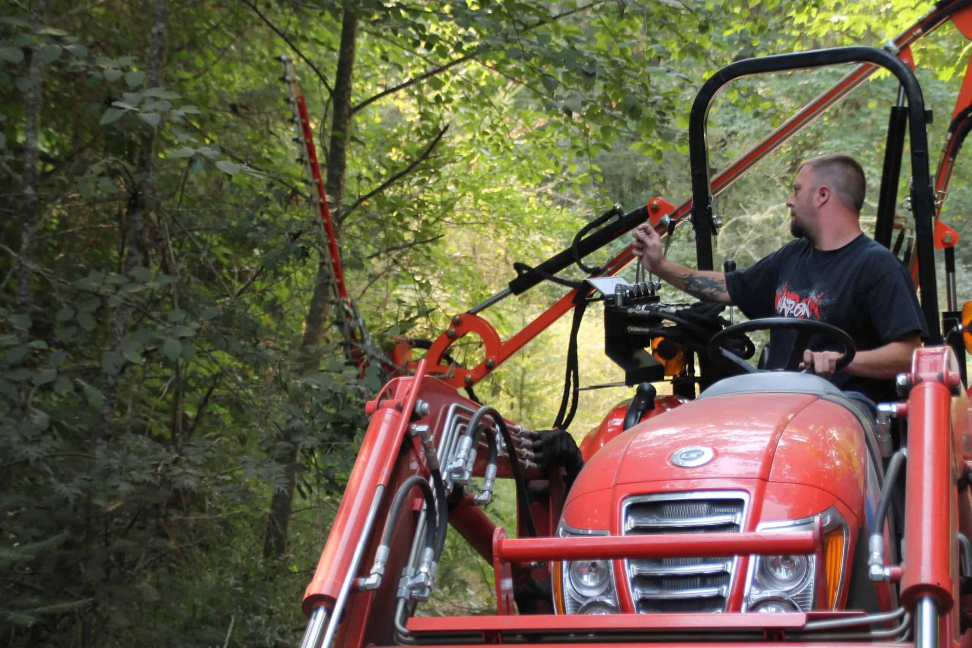 Farmer Helper Hydraulic Boom w/ 6′ Sickle Brush Mower | Model FH-BRM180 | Brush Mower Width 72" | Horsepower 30–60 HP | For Tractors