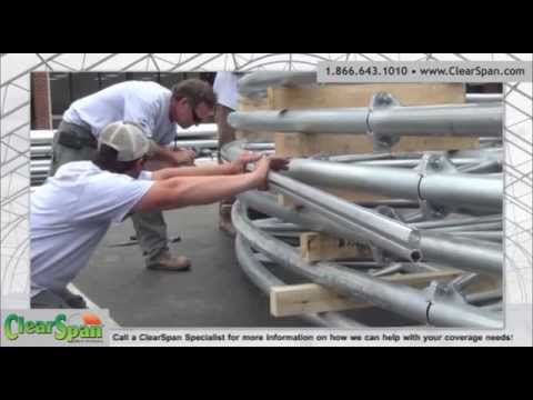 The ClearSpan™ HD Free Standing Building System offers premium structural integrity with high clearance and expansive, open interior space, making it versatile for various applications, including equipment storage, agricultural use, and warehousing. These durable buildings are built with American-made, triple-galvanized structural steel that resists corrosion and is engineered for long-lasting use. The 12.5 oz., 24 mil rip-stop polyethylene cover provides UV resistance and comes in four color options, offering excellent protection from the elements.