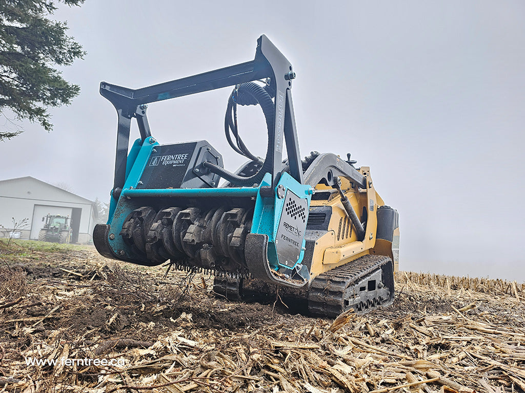 The Ferntree F2S VT Series brings fixed tooth forestry mulching technology to mini skid steers and excavators up to 9 tons. Available in two models — F2S‑90 VT (36″) and F2S‑115 VT (54″) — these mulchers are powered by a Bosch Rexroth variable torque motor (22–45cc) that automatically adjusts torque under load, preventing rotor stalling and conserving fuel. With bite limiter depth control rotors, carbide teeth, and dual‑use excavator base plates, the F2S Series transforms compact carriers into powerful brush‑clearing machines.