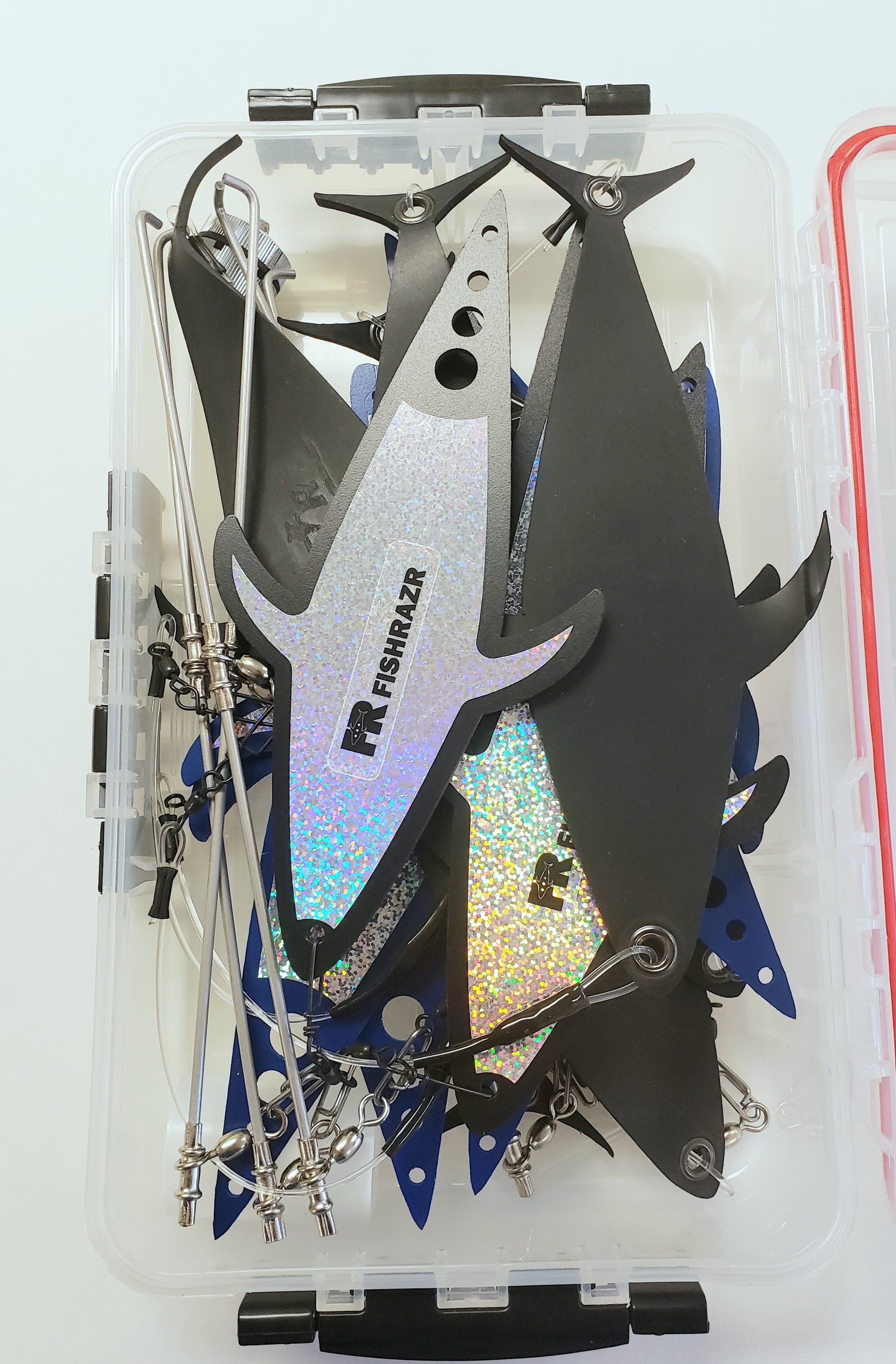A complete full size dredge that fits inside a waterproof tackle box for easy storage. Using our 25" Take Down Dredge bar, choose from either a Super StripZ dredge (90 Fish) or a combination of InciterZ and FlapZ. The Take Down Dredge bar is easy to set up and take apart with no tools required. All arms can be stored fully rigged, then simply put the arms inside the head when you are ready to deploy. Add more teasers to increase the "pod". Lots of fishermen add StripZ as they are light weight, ready to go and create a ton of flash.