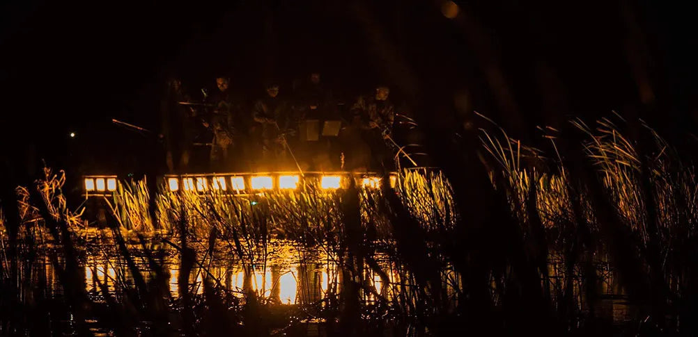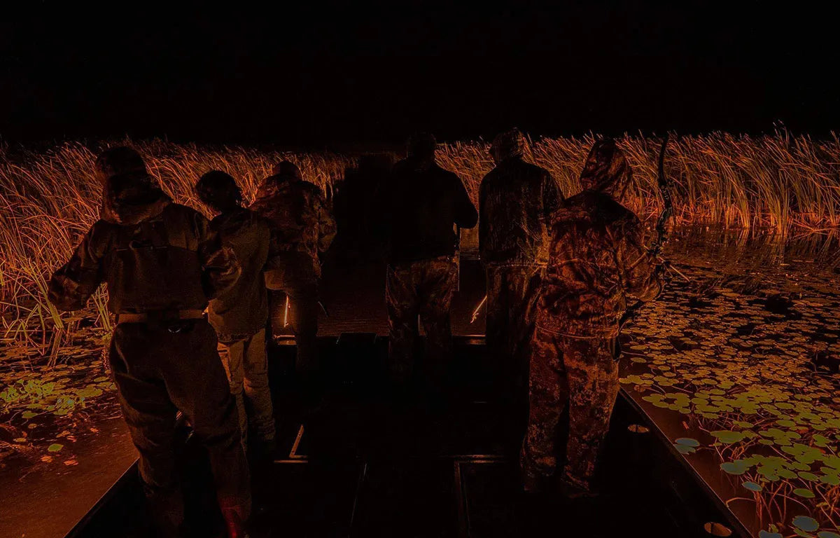 Depending on the water levels and time of the year you book with us we will either be on a specially made bowfishing boat or a airboat equipped with all bowfishing equipment, lights, ect.