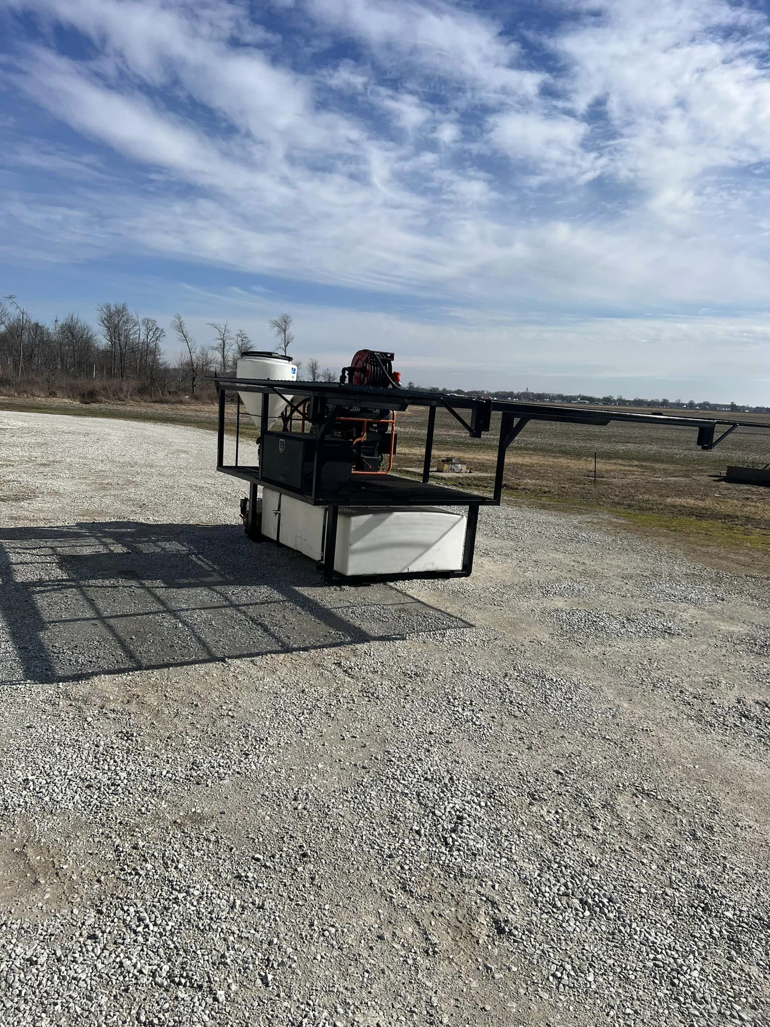The Fold Out Truck Bed Ag Drone Tender System is your go-to solution for agricultural drone operations. Designed to maximize efficiency and convenience, this system integrates seamlessly with either a 6.6’ short bed or 8’ long bed truck. The fold-out wings extend workspace to 10’ wide and up to 16’ long, providing ample room for drone preparation and refueling. Featuring high-capacity water tanks, a 30-gallon inductor, and a top deck with access to chemical storage, this system is built for professional agricultural applications. With durable construction and a compact design, it's perfect for on-the-go drone tending operations.
