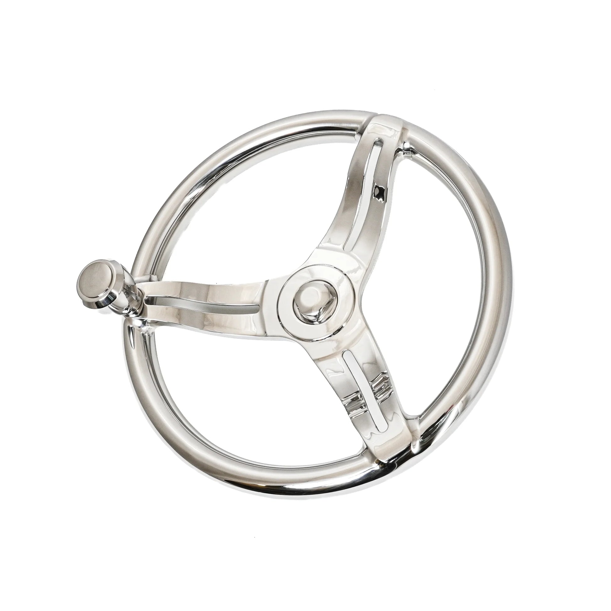 Gemlux | Belloca Steering Wheel | Model 152307 | 13.75" Diameter | Weight 7.4 lb | Stainless Steel | With Deluxe Control Knob | For Boats & Yachts