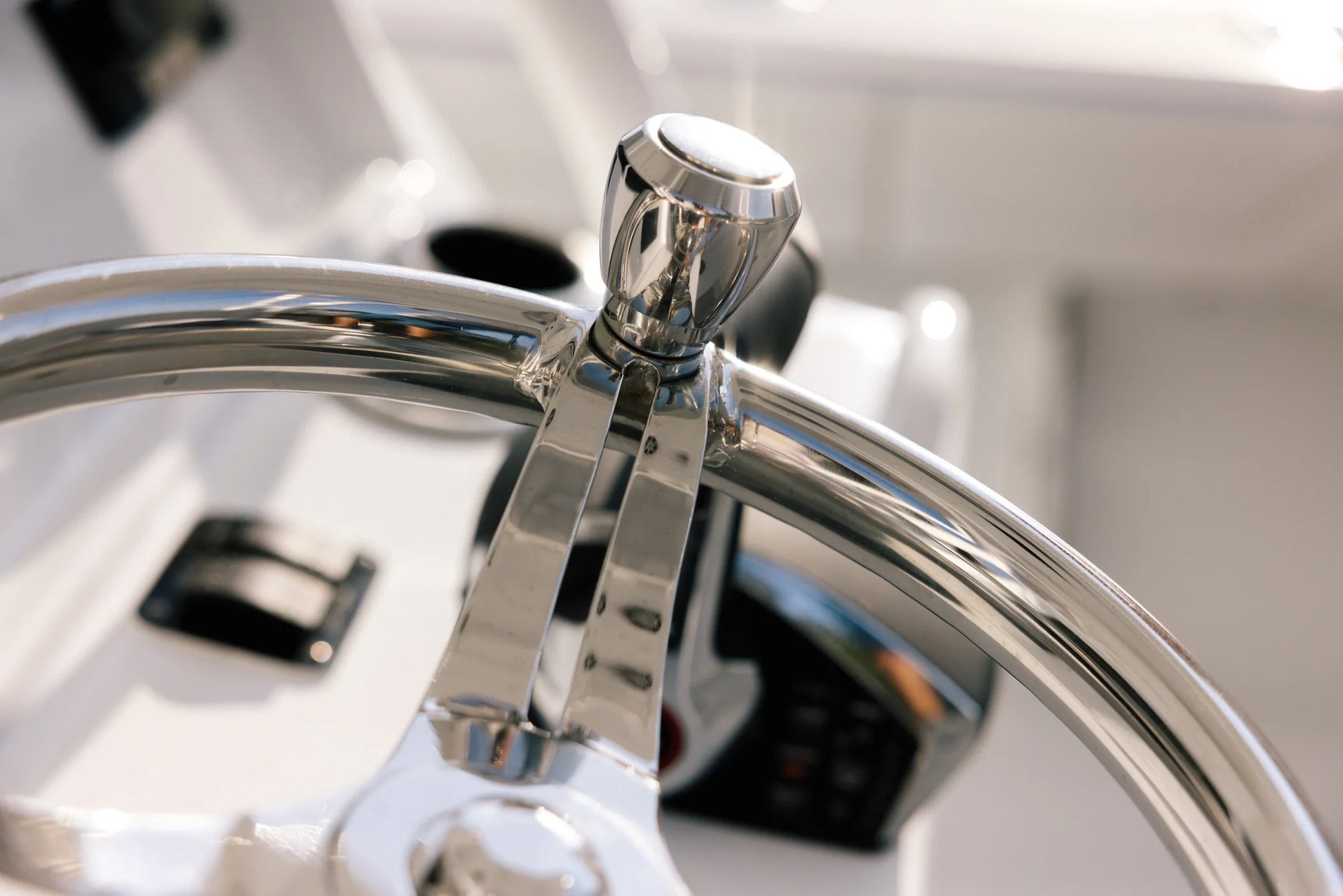 Built to withstand the harsh marine environment, it features a mirror-polished finish, a 1-3/8" ergonomic rim, and an integrated deluxe control knob that ensures smooth, responsive maneuvering even in the choppiest waters. Whether you're navigating tight marinas or cruising offshore, the Belloca delivers precision, style, and unmatched performance.
