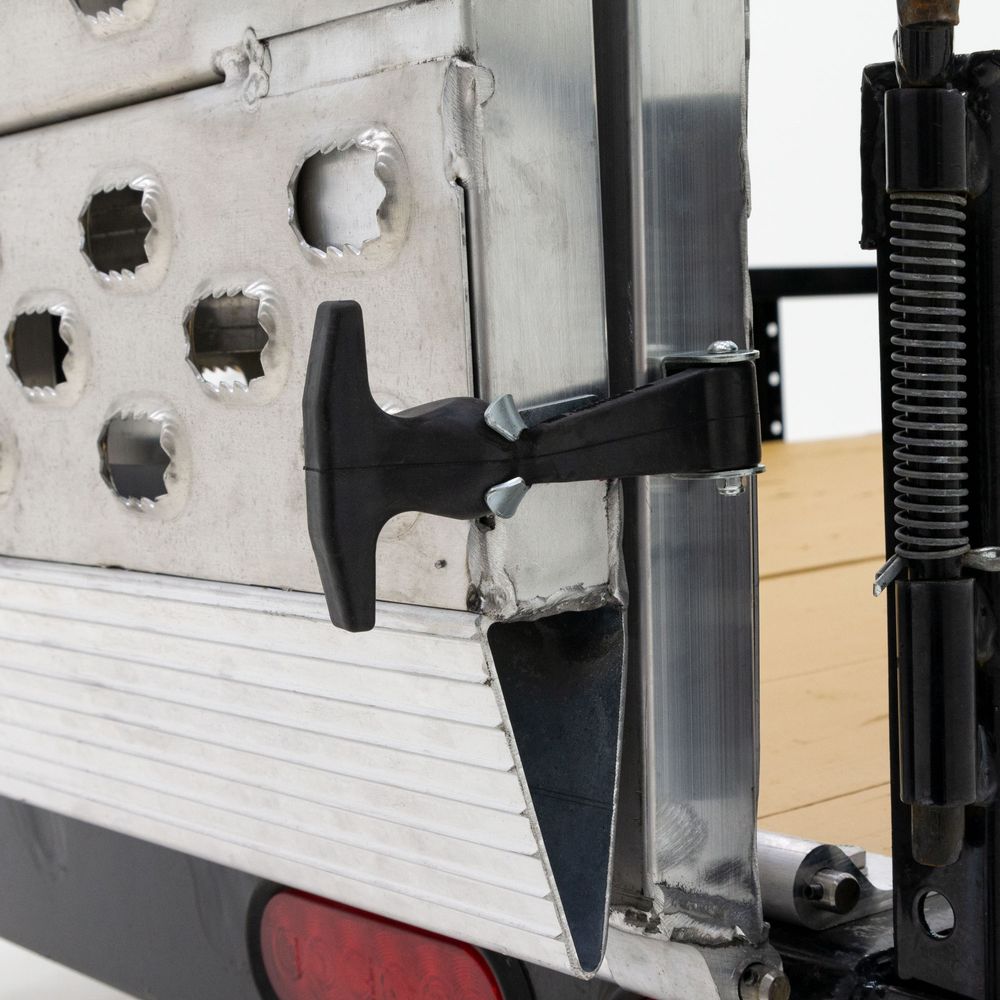 - Integrated strut rods and bungee latches hold both ramp sections firmly in place during travel, preventing vibration or movement.