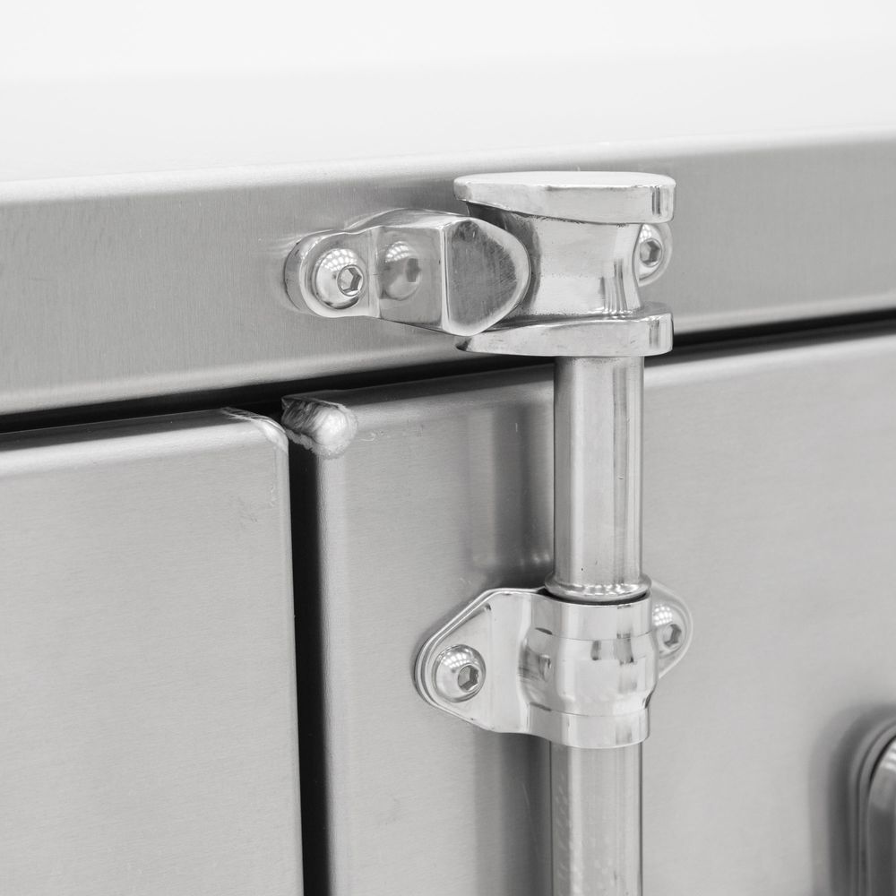 The 1/8" thick aluminum construction ensures long-lasting strength, while a rubber weather seal protects your gear from moisture and grime. Featuring a cam-locking mechanism that accommodates a padlock, it guarantees your equipment stays secure. Ideal for flatbed, platform, step-deck, and dump trailers, this cabinet mounts easily under your trailer and enhances both functionality and style. With lightweight 73 lb. design and a 400 lb. storage capacity, it balances strength with efficiency, making it a must-have for truck owners and fleet operators looking to optimize their workspace on the go.