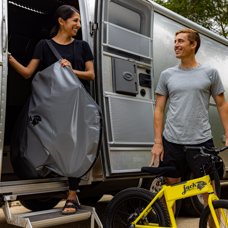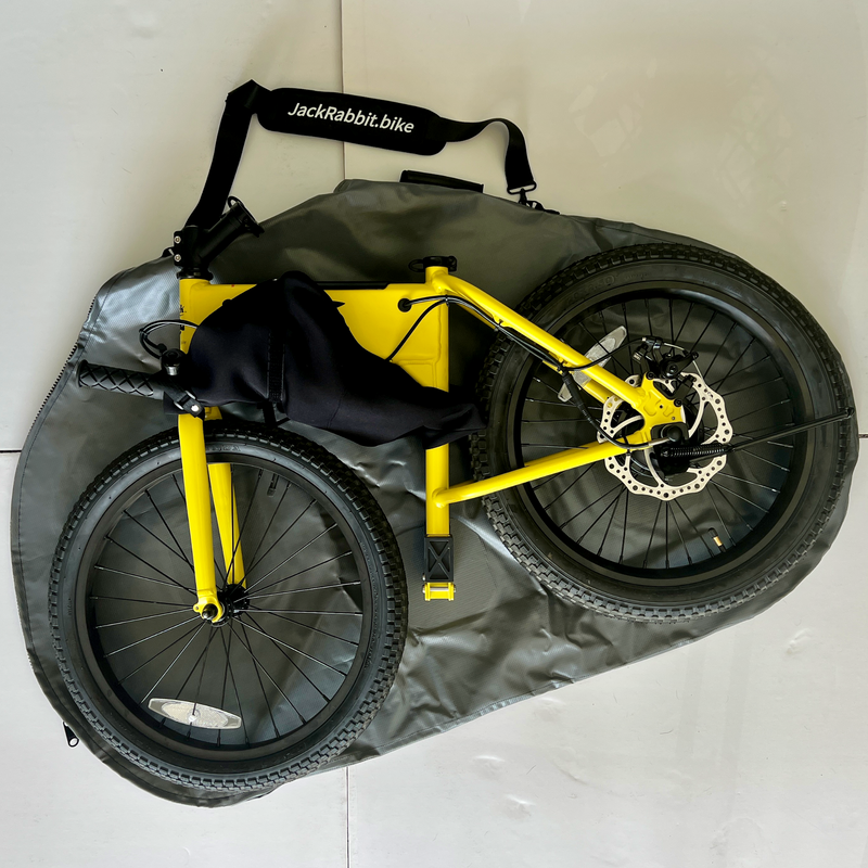 The travel bag features a padded shoulder strap that is both adjustable and removable, providing comfort while avoiding any tangling or snagging during transit. Whether you're embarking on an adventure or commuting to work, the JackRabbit Travel Bag ensures your ride arrives safely and in style.