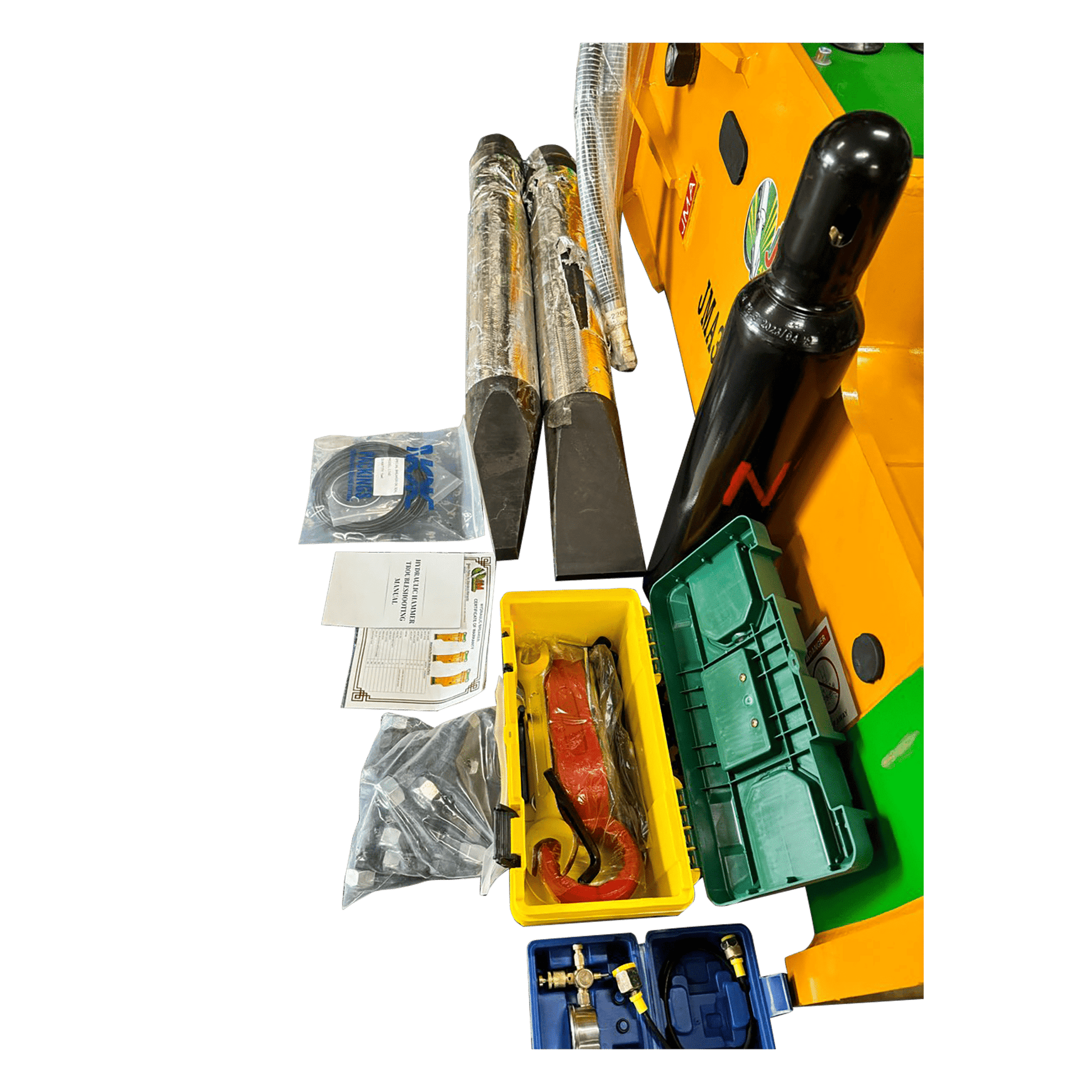 | Accessories Included | 2 Hydraulic Hoses, 1 Moil Rock Chisel Bit, 1 Wedge Rock Chisel Bit, Tool Box, Nitrogen Gauge, Nitrogen Bottle, Repair Seal Kit, 2 Greasable Pins, 4 Bushings |
