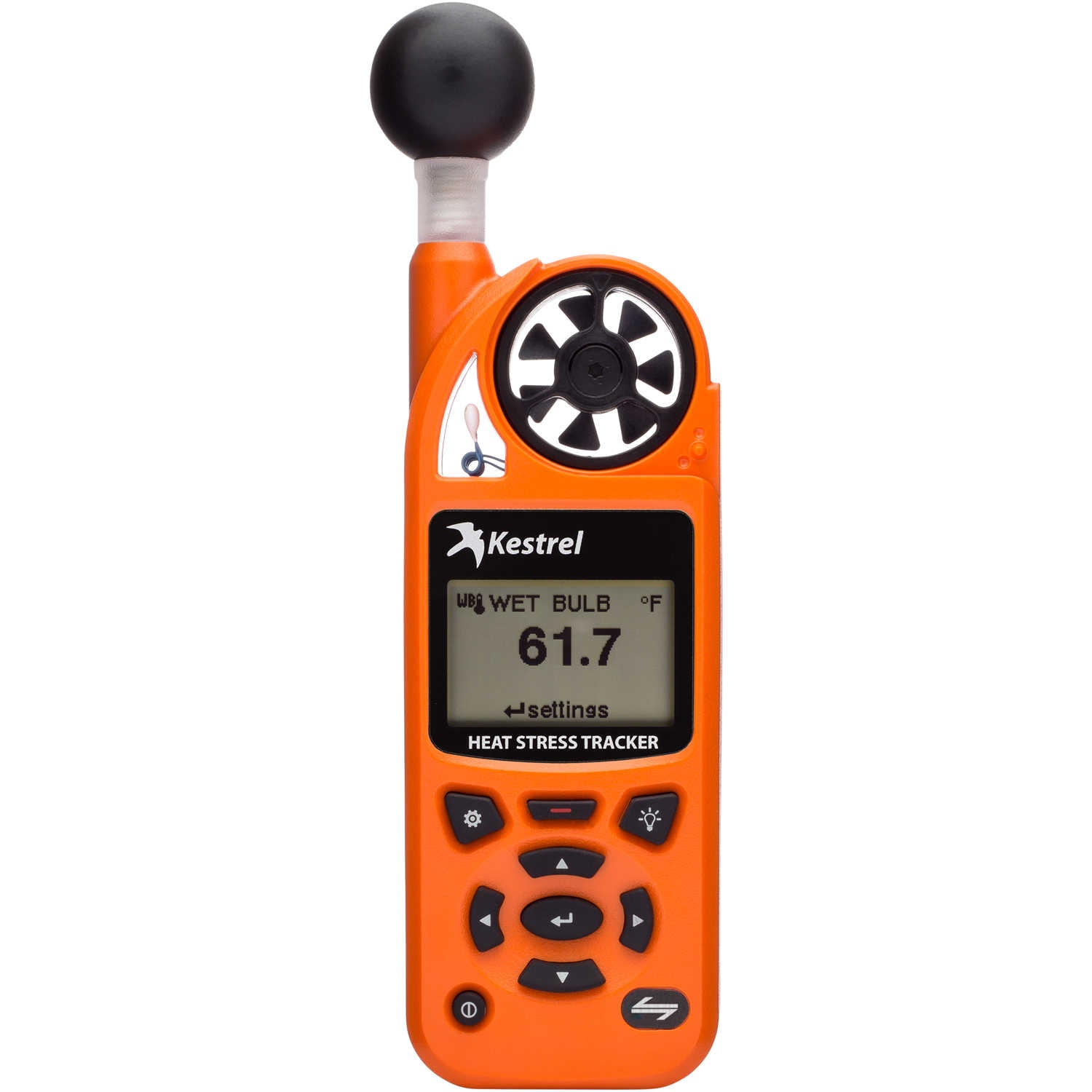 The Kestrel 5400 provides 15 measurements in all including altitude, barometric pressure, density altitude, dew point temperature, globe temperature, heat stress index, naturally aspirated wet bulb temperature, relative humidity, station pressure (absolute pressure), temperature, thermal work limit (TWL), wet bulb temperature (Psychrometric), wet bulb globe temperature (WBGT), wind chill, and wind speed. The Kestrel 5400 features a large, high contrast screen, dual color backlight, scratch- and breakage-resistant window, corrosion-resistant battery compartment with secure door, intuitive user-interface, plus it tracks and logs over 10,000 sets of time-stamped data. Data log can be transferred to a mobile device wirelessly, or to a PC/MAC with the optional waterproof USB Data Transfer Cable (sold separately). Combine the Kestrel 5400 with a portable vane mount and portable tripod (each sold separately) for a data-logging weather station that rotates in even the slightest breeze and is ideal for short-term monitoring. This versatile, waterproof instrument floats, features an easy-to-read backlit display, and has an auto shutdown feature which activates after 15 minutes without a button press (feature can be disabled). Lanyard, protective pouch, lithium AA battery (average life 400 hours), certificate of conformity, and instruction manual are included. Five-year manufacturer’s warranty.