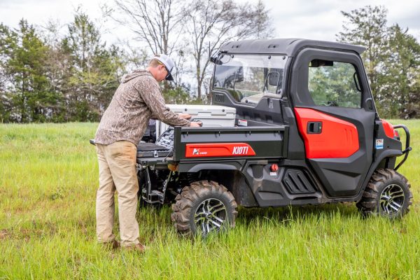 The Kioti K9 2400 CAB Utility Vehicle offers a robust and comfortable solution for navigating the great outdoors. With a factory-installed cab, this UTV is designed to withstand the elements, providing landowners with a climate-controlled, high-comfort experience. Equipped with a 24 HP, 3-cylinder diesel engine, the K9 2400 achieves ground speeds up to 31 mph, making it ideal for efficient transportation across large properties.