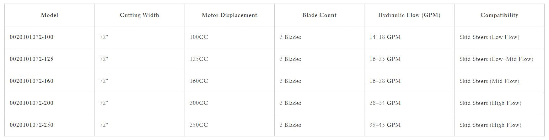 | Compatibility | Skid Steers (Mid Flow) | Skid Steers (High Flow) | Skid Steers (High Flow) |