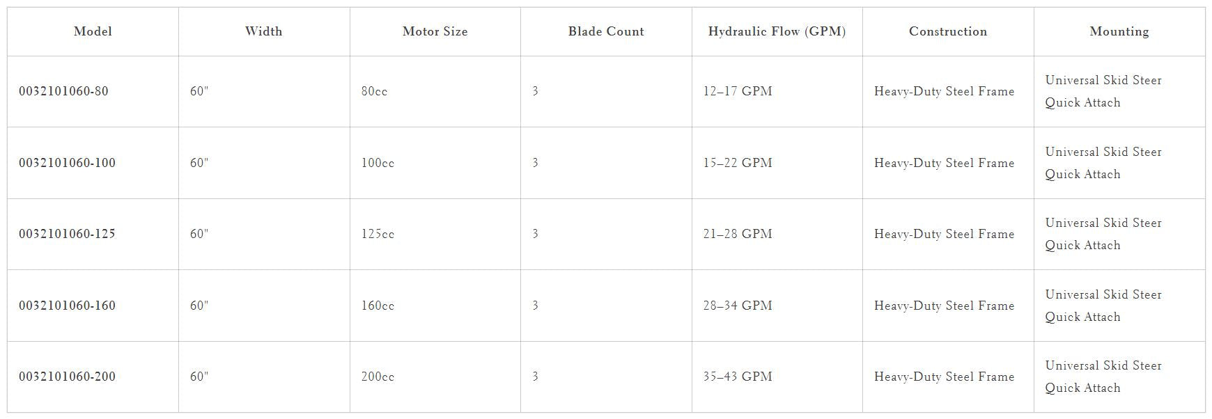 - Hydraulic Flow Compatibility Works with 12-43 GPM, ensuring seamless skid steer operation.