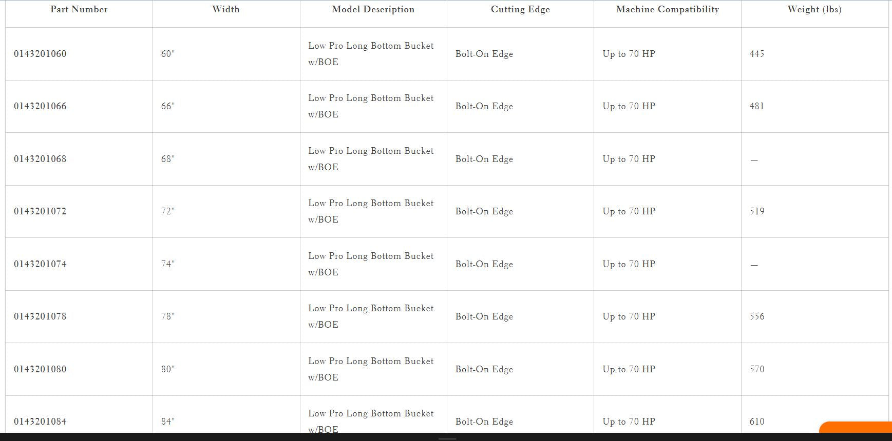 | Model Description | Low Pro Long Bottom Bucket w/BOE | Low Pro Long Bottom Bucket w/BOE |