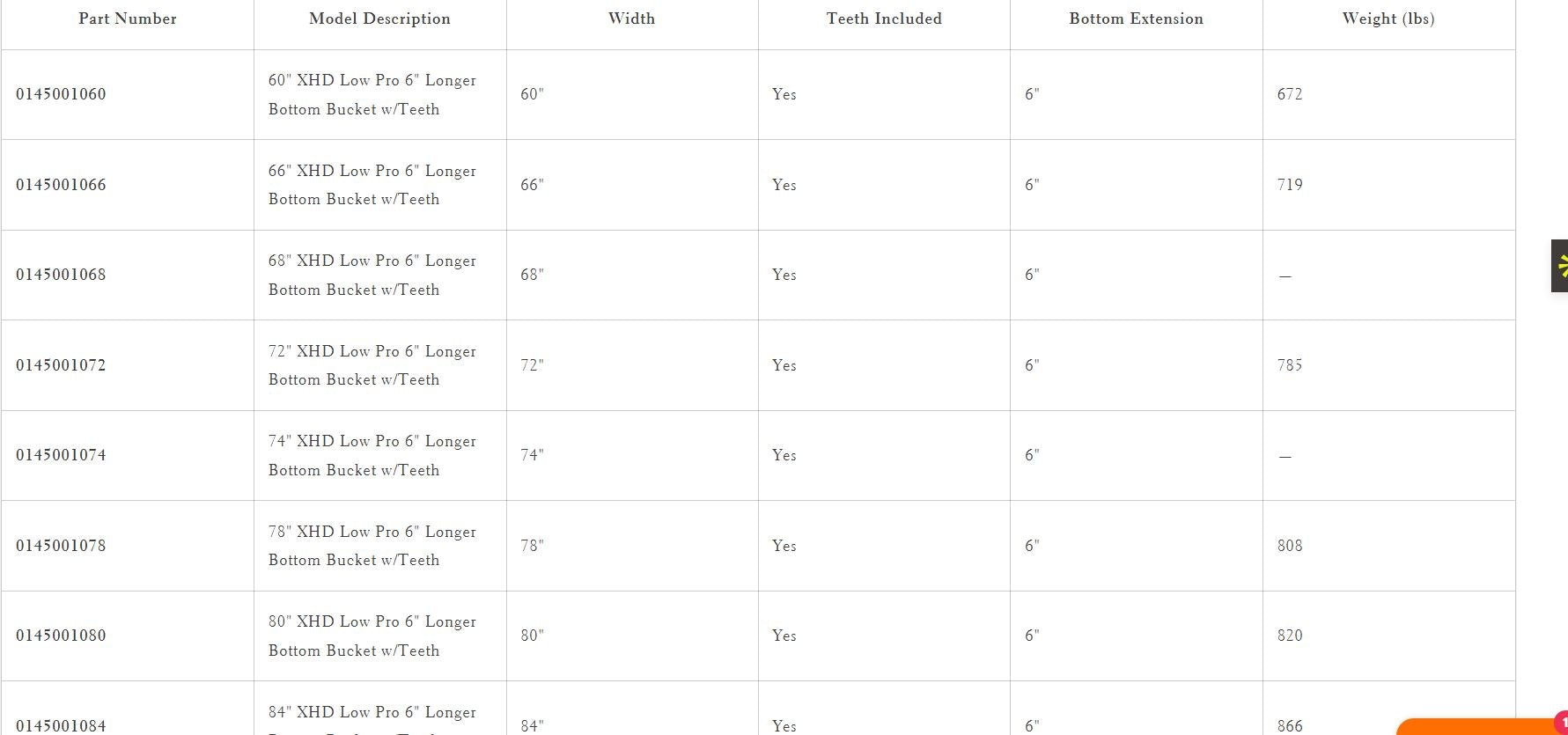 68" XHD Low Pro 6" Longer Bottom Bucket | 68" – 6" | 70+ HP – — |