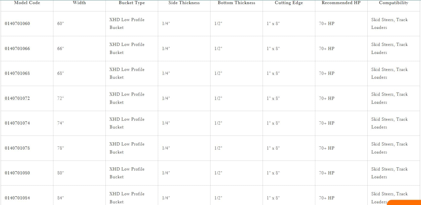 | Bucket Type | XHD Low Profile Bucket | XHD Low Profile Bucket |