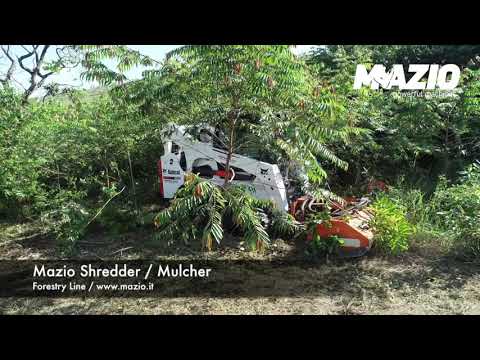 MAZIO'S SKID SHREDDERS are designed with a robust and compact structure to provide new utility to both the lightest and the most powerful skid steers. Their versatility allows for a range of tasks, from basic cleaning and maintenance to mulching large diameter branches and stumps, ensuring a high-quality finish and optimum performance. This is achieved through an optimized rotor and hardened replaceable counter-blades. The shredder body is built in high strength steel, and features include an adjustable height rear roller, sliding skids, and a rotor with floating hammers or blades. The hammers or blades are assembled to the rotor with Ø20 mm bolts. Additional protections include front protection plates and rear protection rubber. It also has a base flange for fastening the optional coupling to the excavator and a hydraulic gear motor with 14 cc displacement and a built-in anti-cavitation valve.
