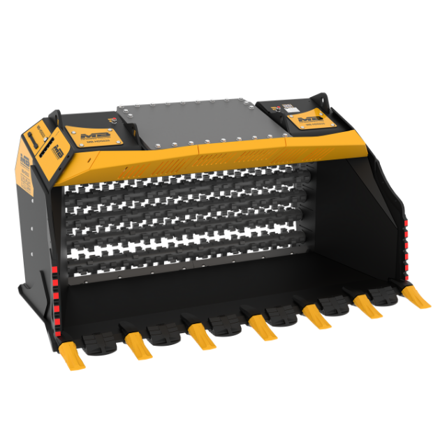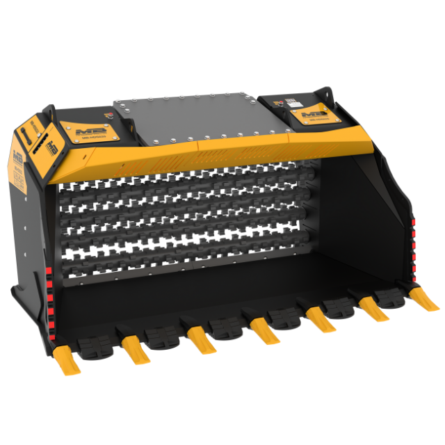 The MB-HDS533 Shafts Screener is a powerful screening attachment, optimized for loaders ranging from 30–50 tons (66,140–110,200 lb). Built for high-efficiency material sorting and mixing, this tool is perfect for quarries, industrial applications, and demolition sites. Its rugged construction ensures longevity, while its smart hydraulic system delivers precision control over material handling operations.