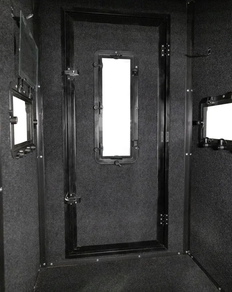 Spacious enough for two hunters, this 100% USA-made blind features magnetic window strips for quick curtain installation, a heavy-duty one-piece roof to keep you dry, and a dark, carpeted interior to mask movement and reduce sound. A shelf with a drink holder and gear cubby, plus a lockable door with window access, make this blind as functional as it is formidable.