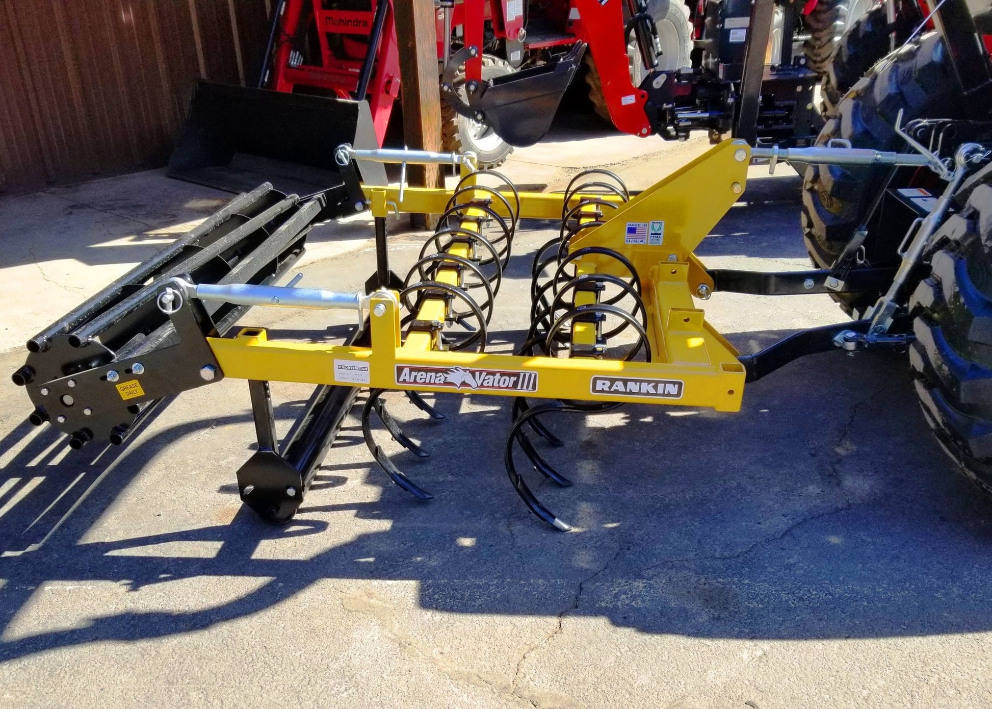 The Arena-Vator III by Northstar Attachments is a versatile and durable tool designed to renovate and condition horse arenas and tracks in a single pass. With a 12' working width and 27 S-tines, this model loosens, levels, and packs the soil, providing a firm yet cushioned surface that promotes secure footing for horses. The AV-3’s frame accepts optional scarifier shanks for breaking up compacted ground, offering enhanced customization to meet individual surface needs. This unit includes an adjustable leveling bar and a 12" rear pipe roller, which gauges depth while evenly packing the soil, resulting in a professional-grade finish.