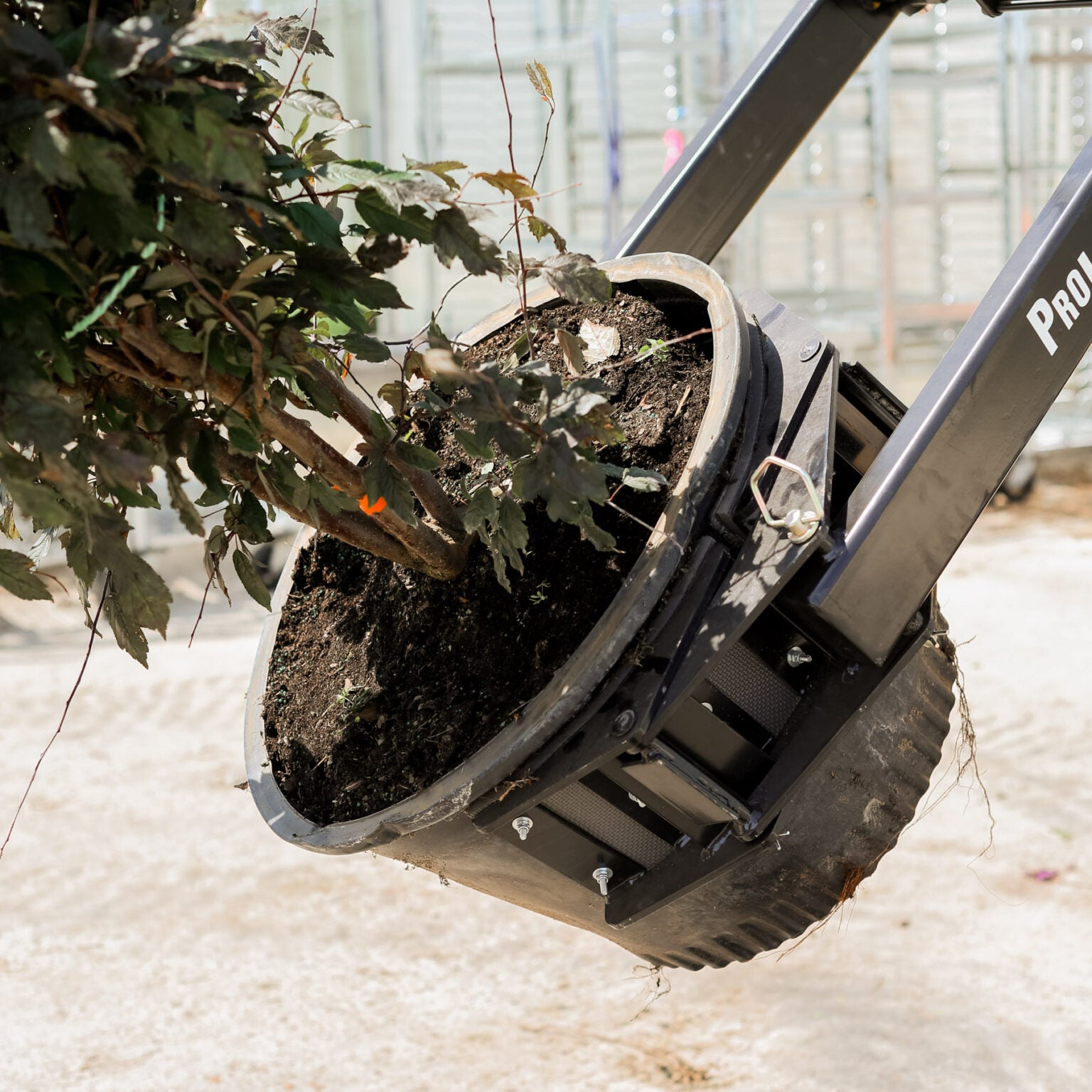 The ProLine POTHANDLER™ is a specialized attachment designed to gently move potted plants, trees, figurines, and more without causing damage. Unlike traditional handling equipment, the POTHANDLER™ protects even soft or freshly-potted plants by eliminating impact, distortion, and jarring.