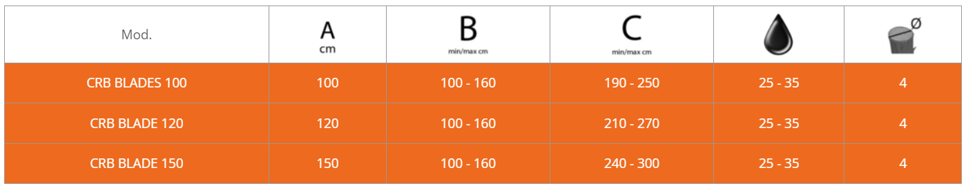 | Specs | CRB Blade 100 | CRB Blade 120 | CRB Blade 150 |