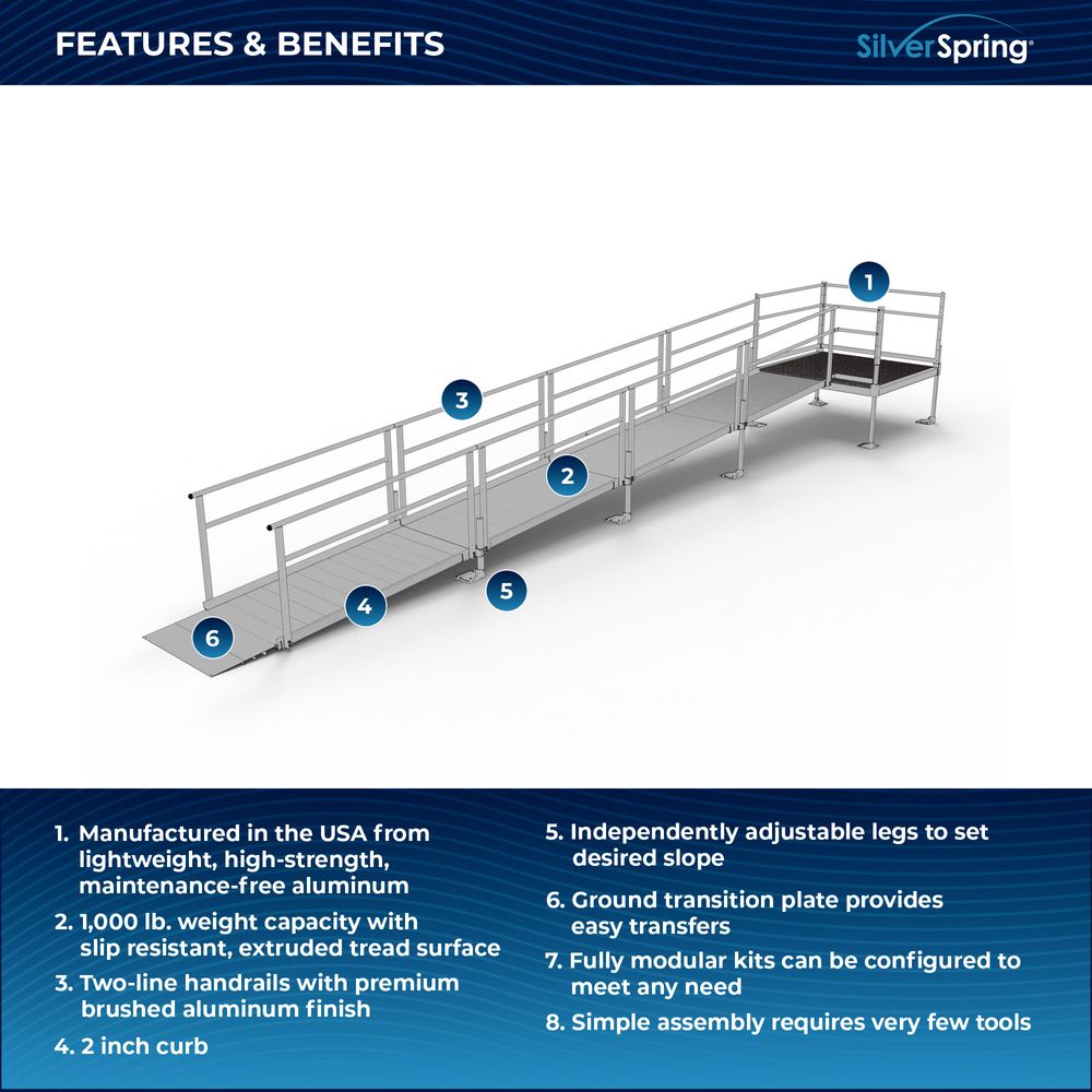Silver Spring Clearway Straight Modular Ramp | Model SSS22S44T | 36" W x 22' L | 1,000 lb Capacity | For Wheelchair, Scooter, & Mobility Access