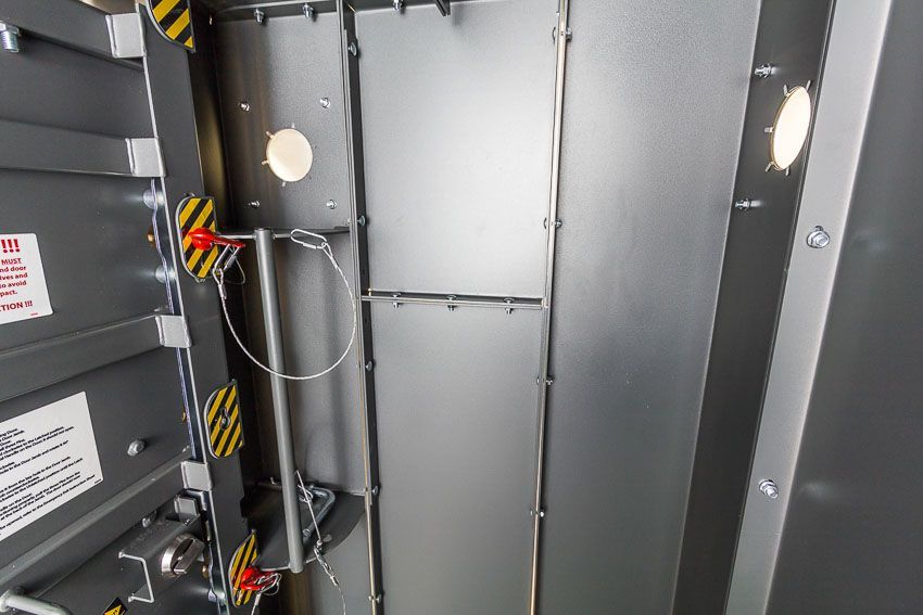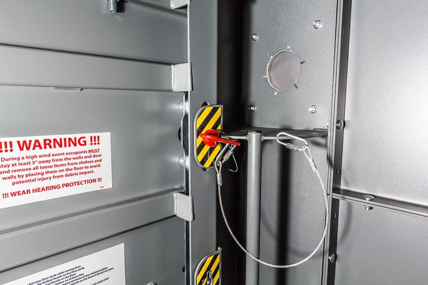 A key feature of this shelter is its reinforced sliding steel door, which eliminates the risk of outward-swinging doors getting blocked by debris during a storm. This space-saving design allows you to enter and exit without additional obstacles, even if debris has accumulated outside. The shelter's locking system uses steel pins and a security-grade deadbolt, providing multiple layers of protection to keep you safe from intruders as well as natural disasters.