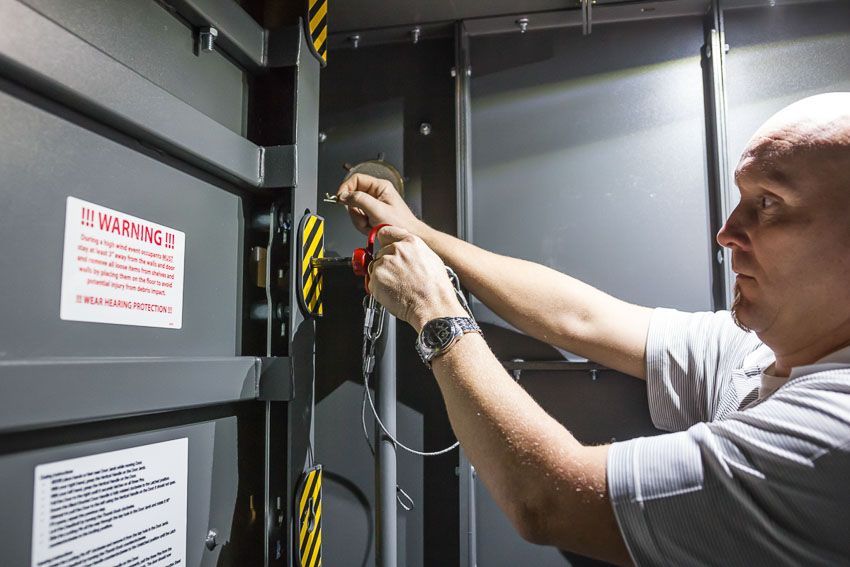 Every component of the Swisher 6-Person ESP Safety Shelter is made with durability in mind. The shielded air vents ensure proper ventilation during use, while the emergency exit panel with included wrench allows for easy escape in case of blockage. A single-handle operation locks all steel pins securely in place in one motion, ensuring your shelter is sealed quickly and effectively when seconds matter.
