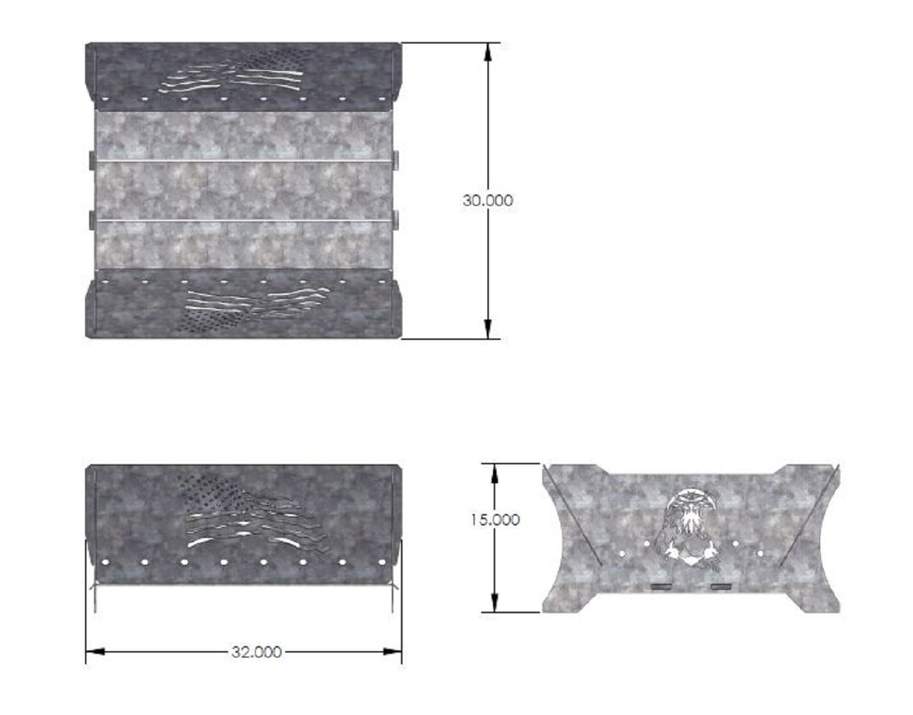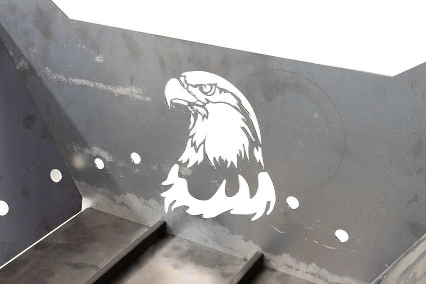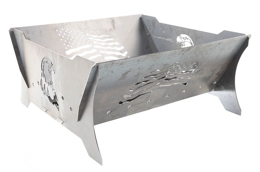 The Swisher Eagle & Flag Fire Pit is more than just a fire pit it's a statement piece. Crafted from durable 11-gauge steel, it boasts a laser-cut design featuring the iconic American Flag and Bald Eagle. As time passes, the raw steel finish will naturally develop a unique patina, making each pit one-of-a-kind. Its compact size (32" L x 30" W x 15" H) makes it perfect for small patios or backyard spaces, and it’s easy to assemble and disassemble without the need for any tools. Ideal for wood burning and outdoor use, this fire pit brings warmth and charm to any setting.
