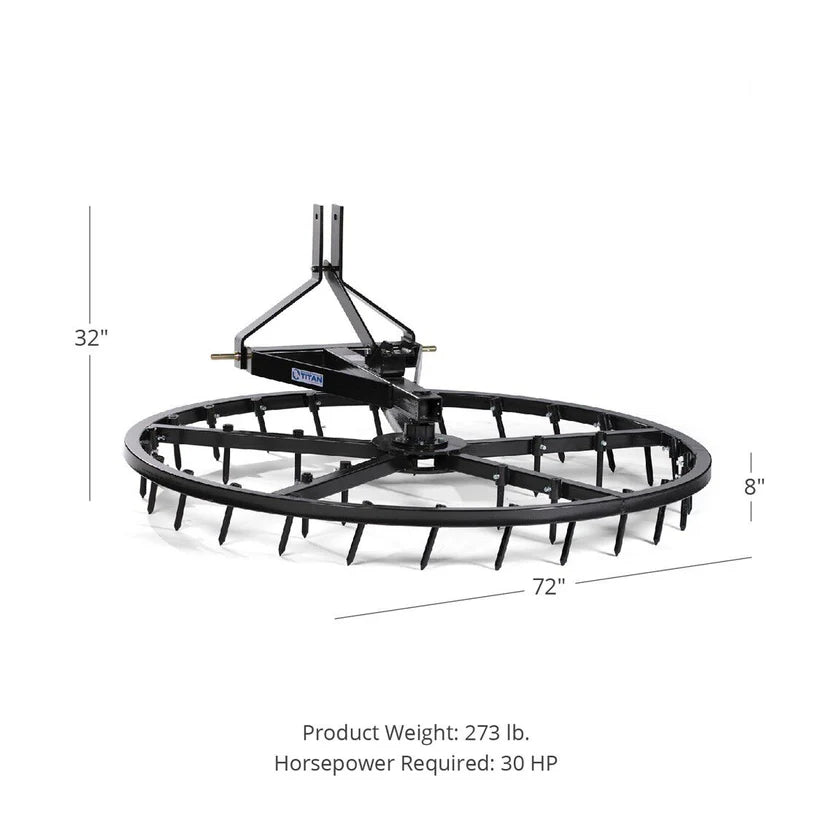 Titan Attachments Arena Spin Harrow | 3 Point Hitch | 75" Width | 35 Hardened Teeth | 273–380 lbs | Horsepower 30 HP | For Tractors