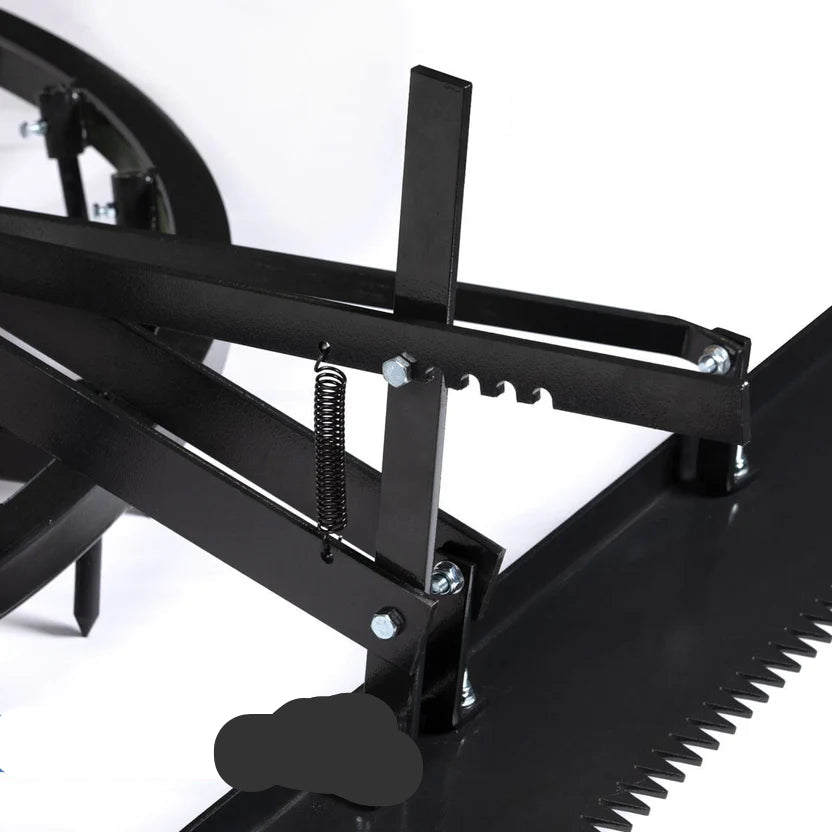 - Spring-Loaded Lever for Rake Adjustment Easy angle and depth control for tailored grooming.