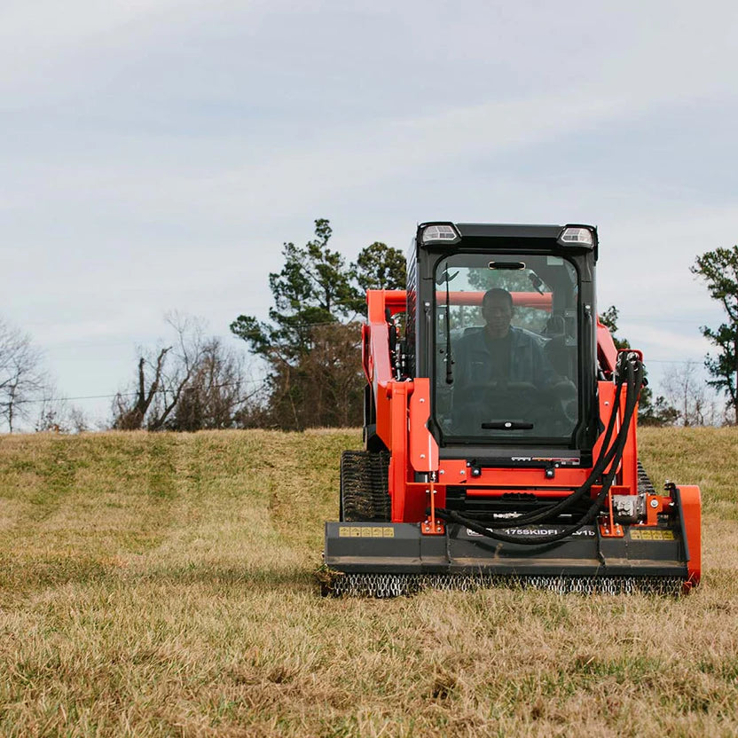 The Hydraulic Skid Steer Flail Mower is your go-to attachment for heavy-duty vegetation control across farms, roadsides, parks, and commercial green spaces. Designed with a powerful motor driven by your machine’s hydraulic remotes, this flail mower tears through thick grass, brush, and small saplings up to 3" in diameter in one swift pass.