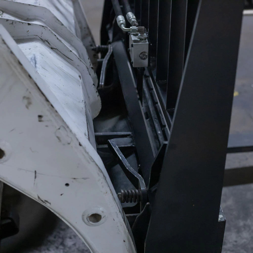 - Dual Hydraulic Cylinders Provide equal pressure to keep blades perfectly centered.