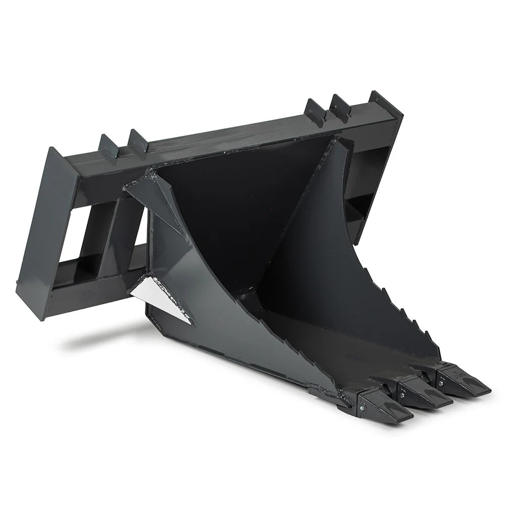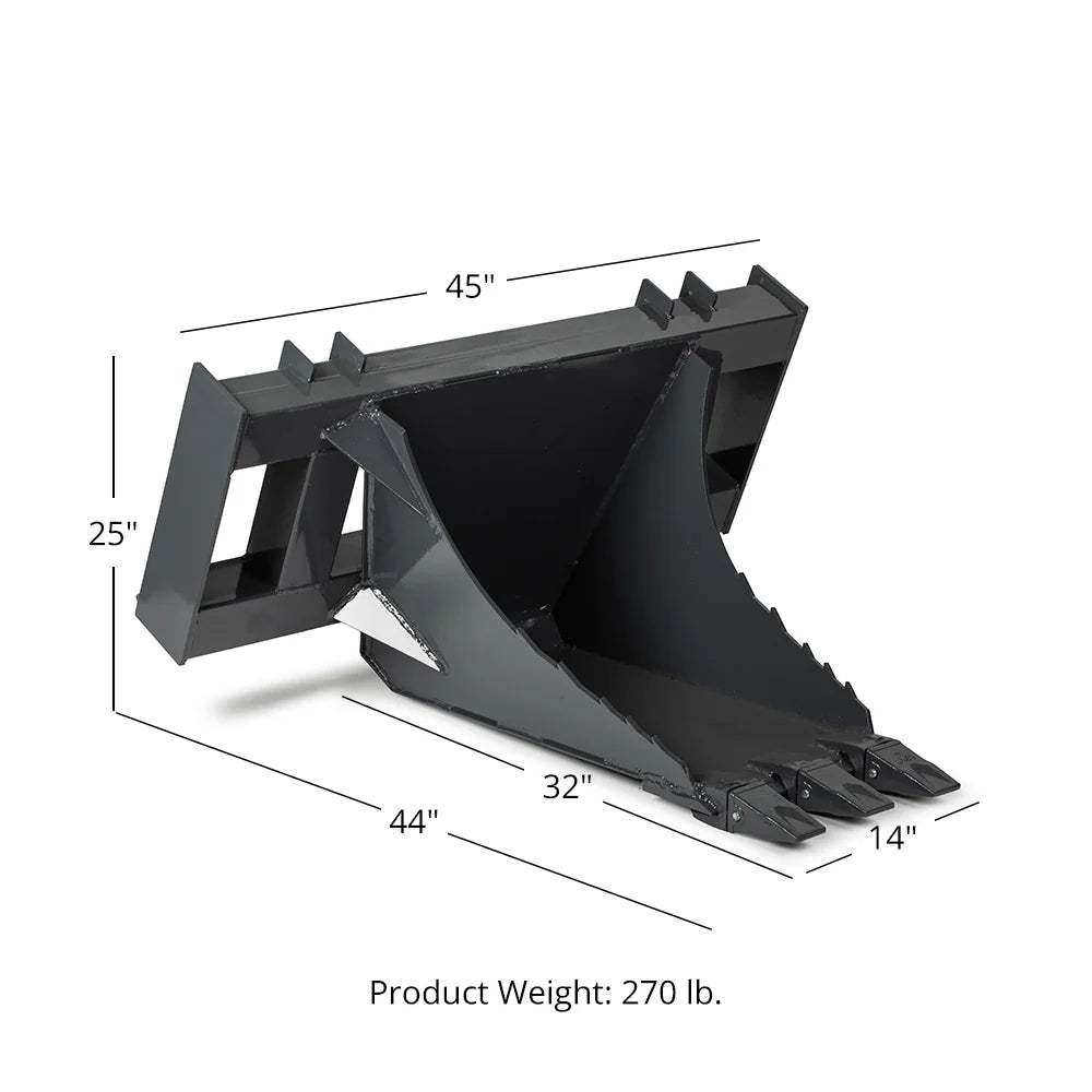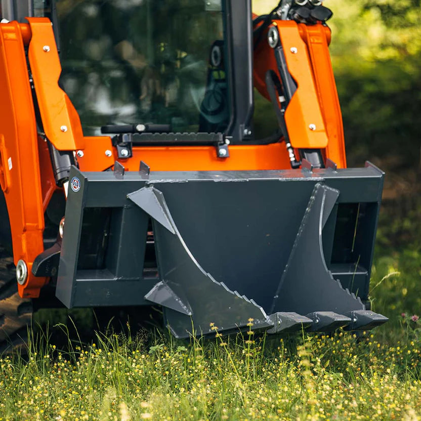The Extreme Stump Bucket is your heavy-duty solution for root, stump, and debris removal. Designed for efficiency and maximum digging force, it features a serrated 0.5-inch leading edge and LW80 replaceable teeth that tear through compacted soil with ease. The 45-inch width offers a focused reach while maintaining maneuverability, and the 12–22 GPM hydraulic oil flow compatibility ensures smooth, consistent performance with most skid steer loader systems. Constructed with 0.375-inch Grade 50 steel and reinforced with a rugged 4" x 4" backplate, this attachment is ready to tackle forestry, land clearing, and excavation tasks head-on.