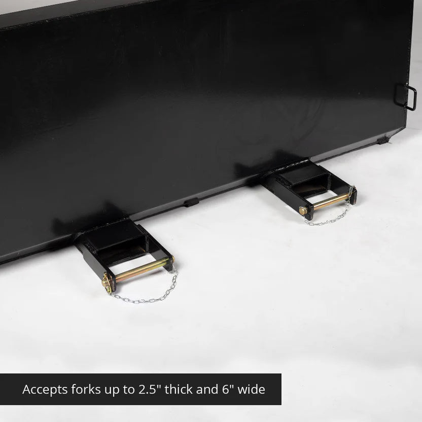 Reach new heights in material handling with the Fork Mounted Telehandler Bucket, engineered for universal telehandler compatibility and built to tackle demanding job site tasks. Whether you're backfilling over walls, loading dump trucks, or moving gravel, sand, or debris, this bucket delivers high-capacity performance with precision and durability. Constructed from Grade 50 structural steel, the bucket features 8mm thick reinforced side plates and a welded-on cutting edge for aggressive digging and long-term wear resistance. The universal fork mounting system accepts forks up to 2.5" thick and 6" wide, and includes a lock pin shaft and buckle to ensure secure attachment during operation. With a 1.9 cubic yard fill capacity, this bucket is ideal for contractors, landscapers, and site managers who need reliable, elevated material handling. The powder-coated charcoal finish adds corrosion resistance and a professional look.