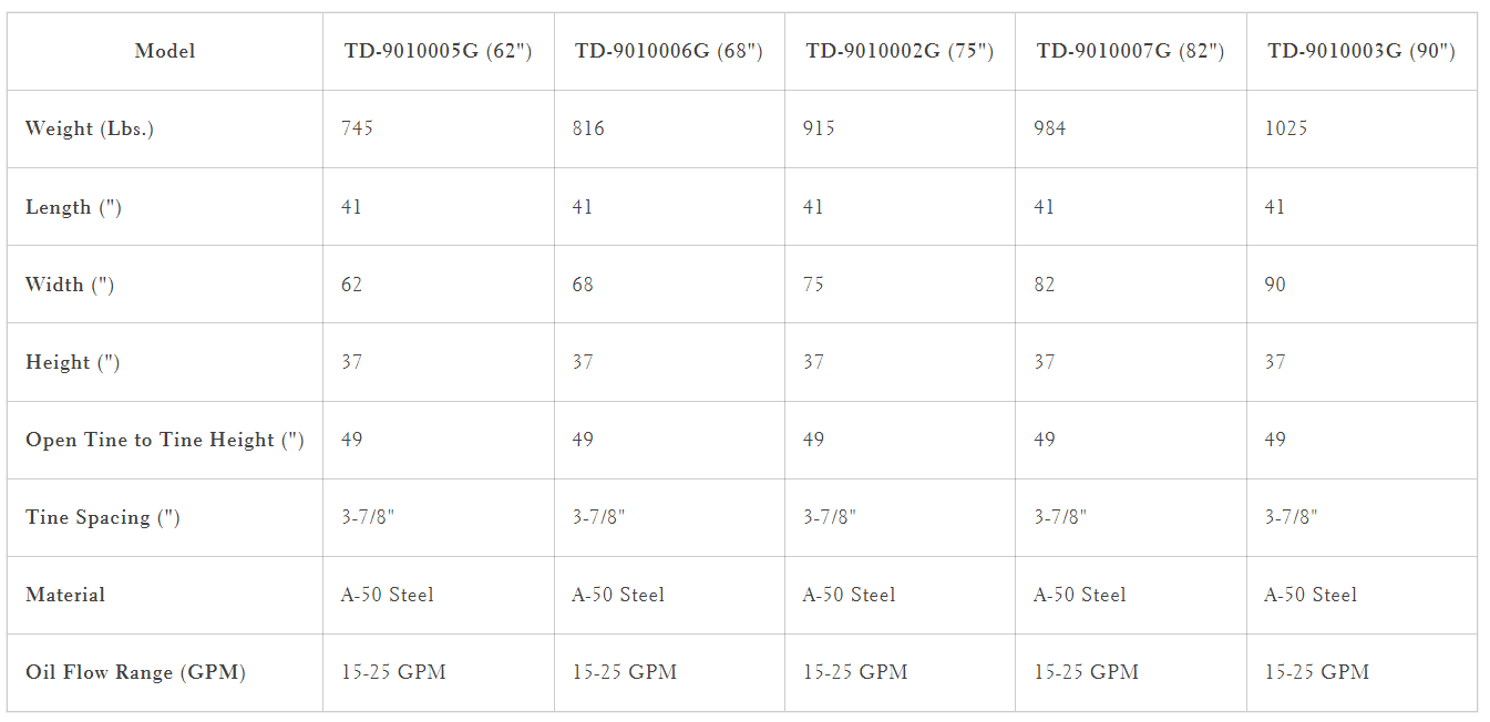 Hydraulic System – Requires 15-25 GPM oil flow, ensuring smooth and efficient operation.