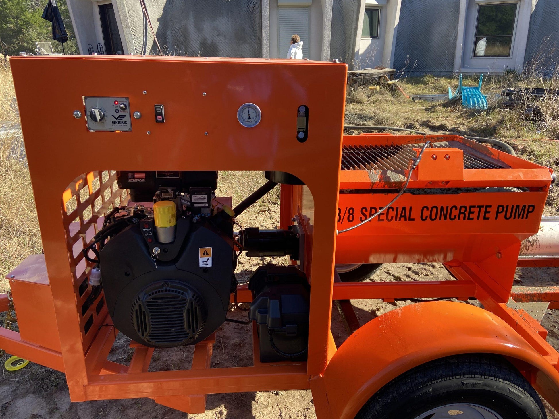 The Ventures Equipment 3/8 Special Concrete Pump is built to be rugged, robust and reliable. Utilizing the latest technology in progressive cavity pumping, combined with proven variable speed hydraulics, the 3/8 Special offers simple and reliable operation. The unit provides constant output based on the design, eliminating material surge at hose end or nozzle. Variable speeds and reversible. Proudly built at our facility in North Texas, USA.