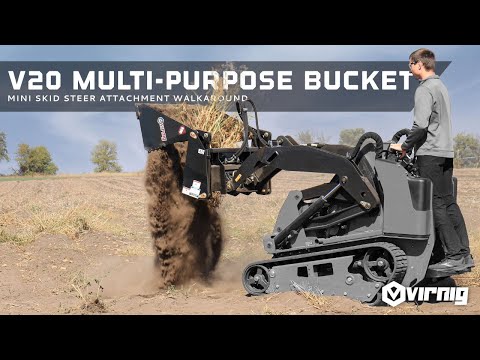 The Virnig V20 Mini Skid Steer Multi-Purpose Bucket (4-in-1) is the ultimate attachment for mini skid steers, designed to deliver multi-functionality and superior durability in every task. Whether you're dozing, clamming, leveling, or bottom dumping, this innovative bucket is engineered to handle it all with precision and ease.