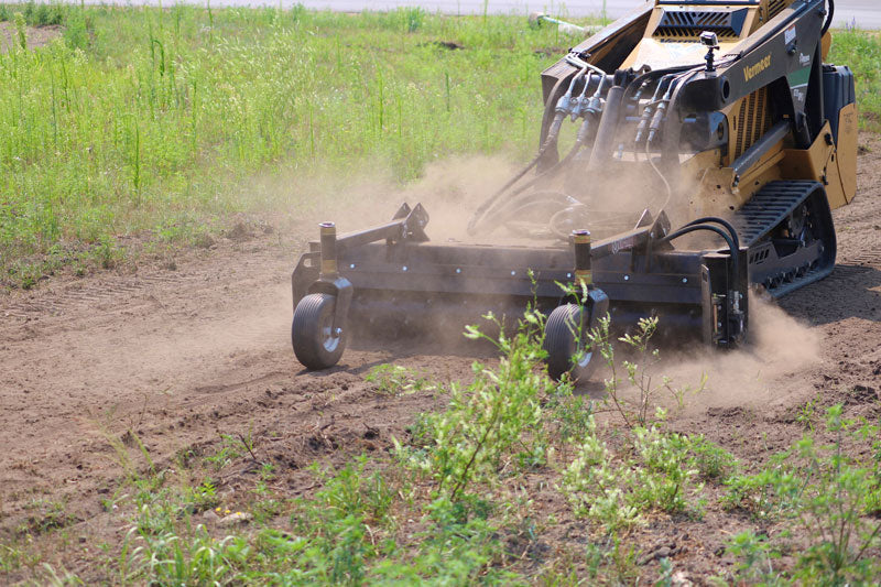 The Virnig V20 Mini Skid Steer Power Rake is a high-performance attachment designed to take your mini skid steer to the next level, offering superior grading, soil preparation, and debris removal. Whether you're working on a construction site, landscaping a residential property, or clearing a gravel driveway, this versatile power rake ensures a professional, smooth finish every time.