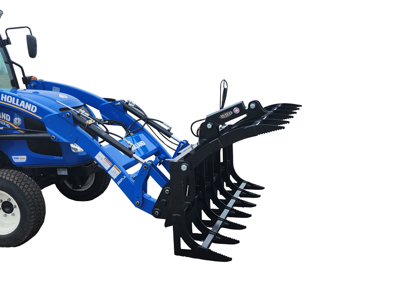 The WIFO GP48MS Mini Skid Steer Grapple Rake is a light-duty, affordable debris grapple designed for mini skid steers and small compact tractors. With a 48″ working width, it is ideal for clearing debris, brush, and light materials in construction, landscaping, and agricultural applications. Built with 1/4″ mild steel construction and reinforced double steel tips, this grapple ensures durability and reduces the risk of bending. It comes equipped with hydraulic hoses, quick couplers, and a hose holder, making it ready for immediate use. The grapple is compatible with mounts for all major mini skid steer brands, including UQA and JD400 series loaders.