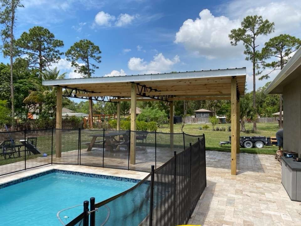 - Material: High-quality wood posts and 26-gauge metal roofing.